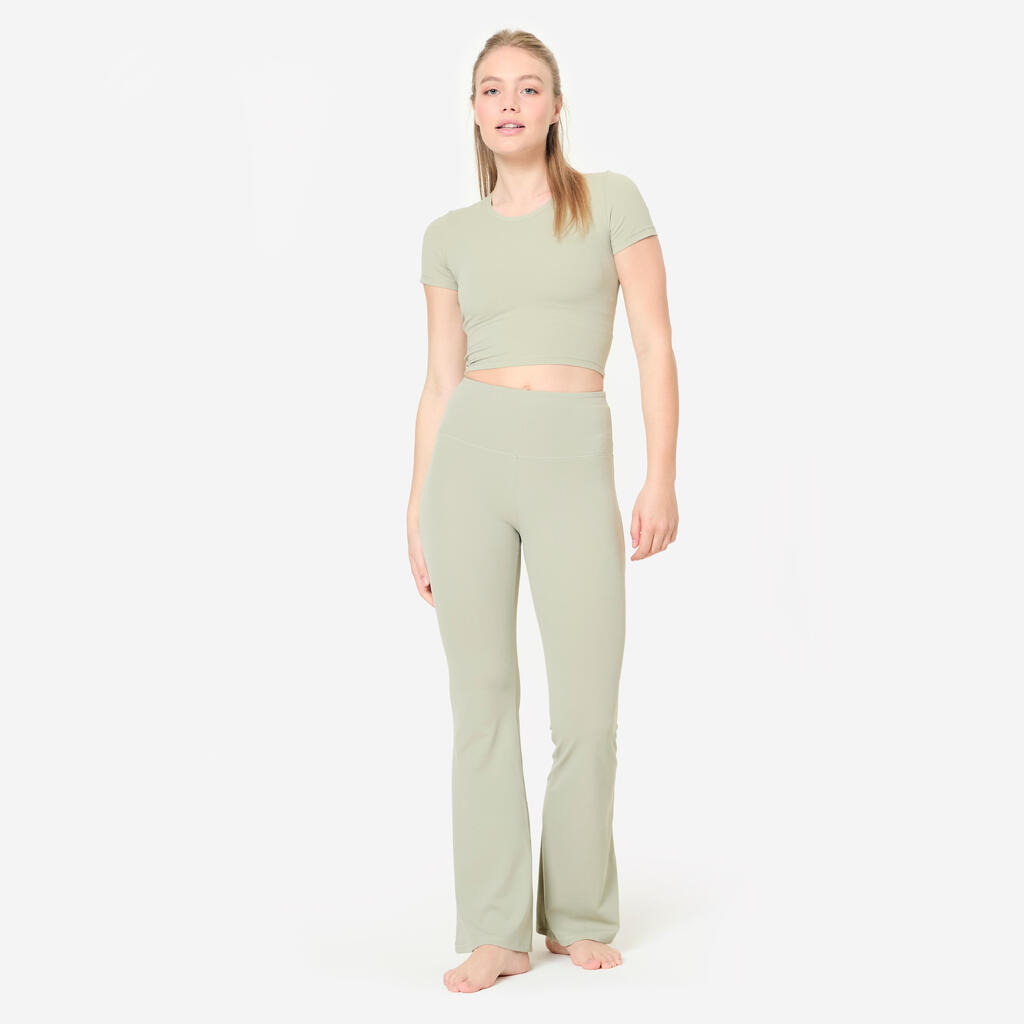 Αυτό το παντελόνι καμπάνα για yoga συνδυάζει αρμονικά το στιλ με την απόδοση. Το ελαστικό του ύφασμα ακολουθεί κάθε σας κίνηση, για ελευθερία και κομψότητα.