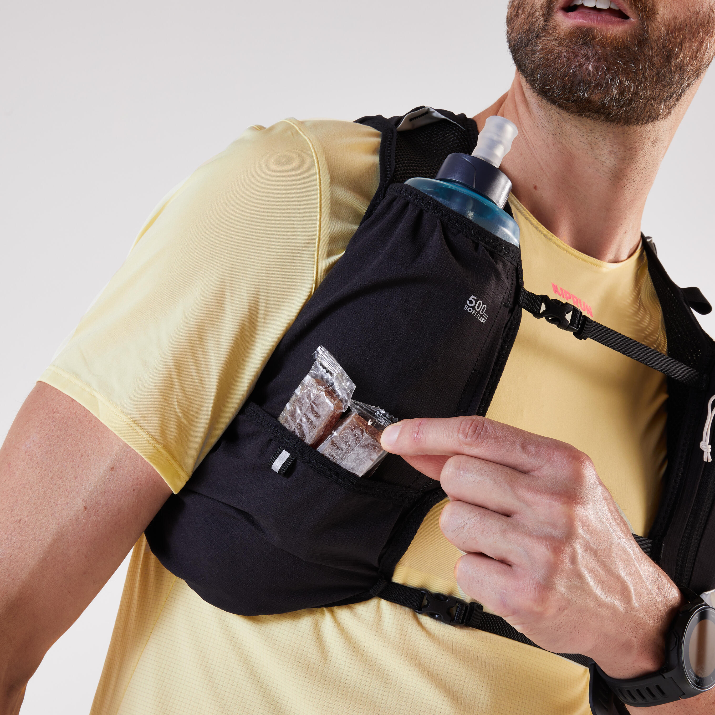 Η ενθουσιώδης ομάδα μας σχεδίασε αυτό το σακίδιο 8L για μεταφορά του εξοπλισμού σας, εύκολη ενυδάτωση και χώρο για μπουκάλια 500 ml κατά τις ορεινές διαδρομές.