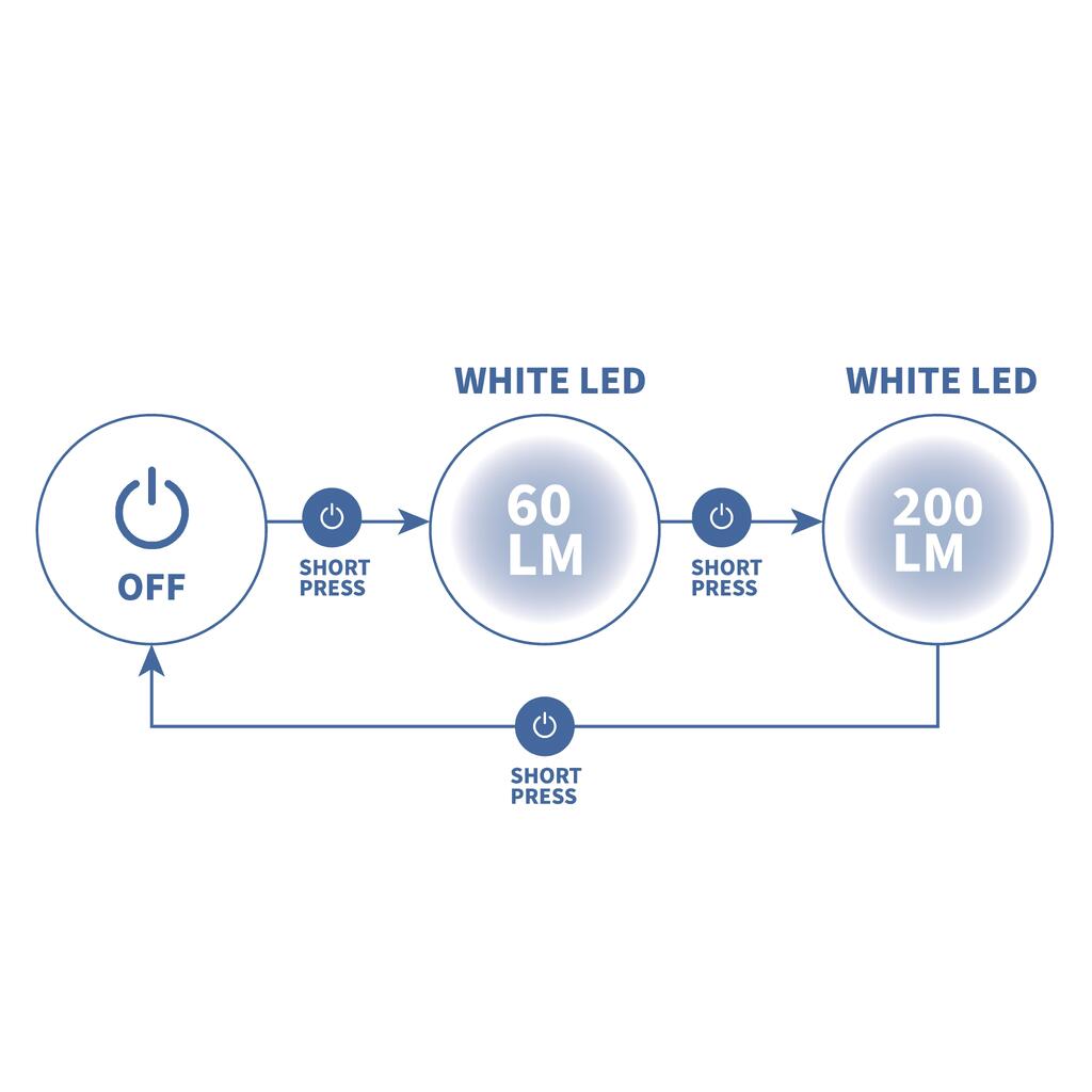 > Στη μέγιστη ισχύ των 200 lumens, θα έχετε αρκετή μπαταρία για 2,5 ώρες.