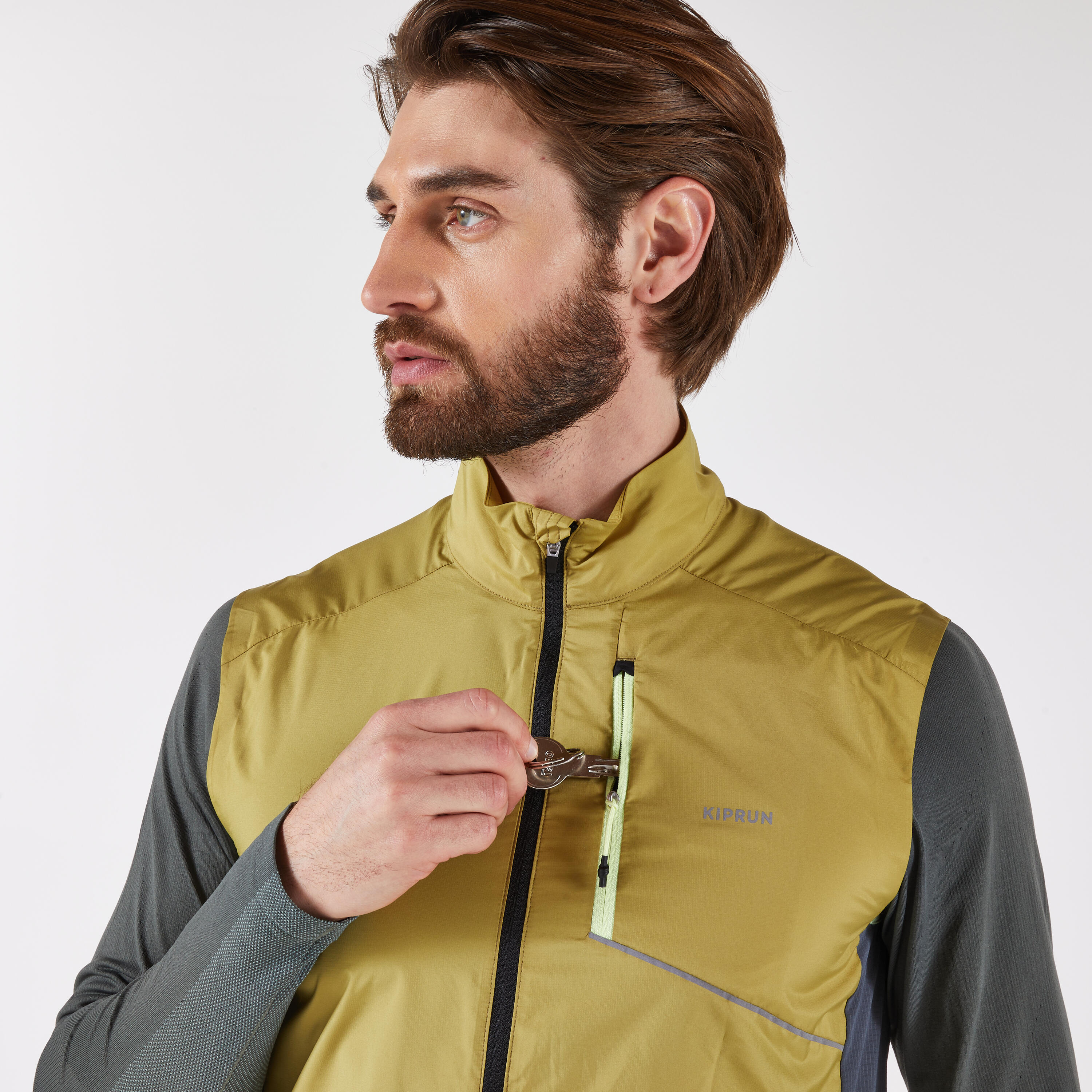 Ανδρικό Αμάνικο Αντιανεμικό Μπουφάν Τρεξίματος KIPRUN Run 500 - Χακί
