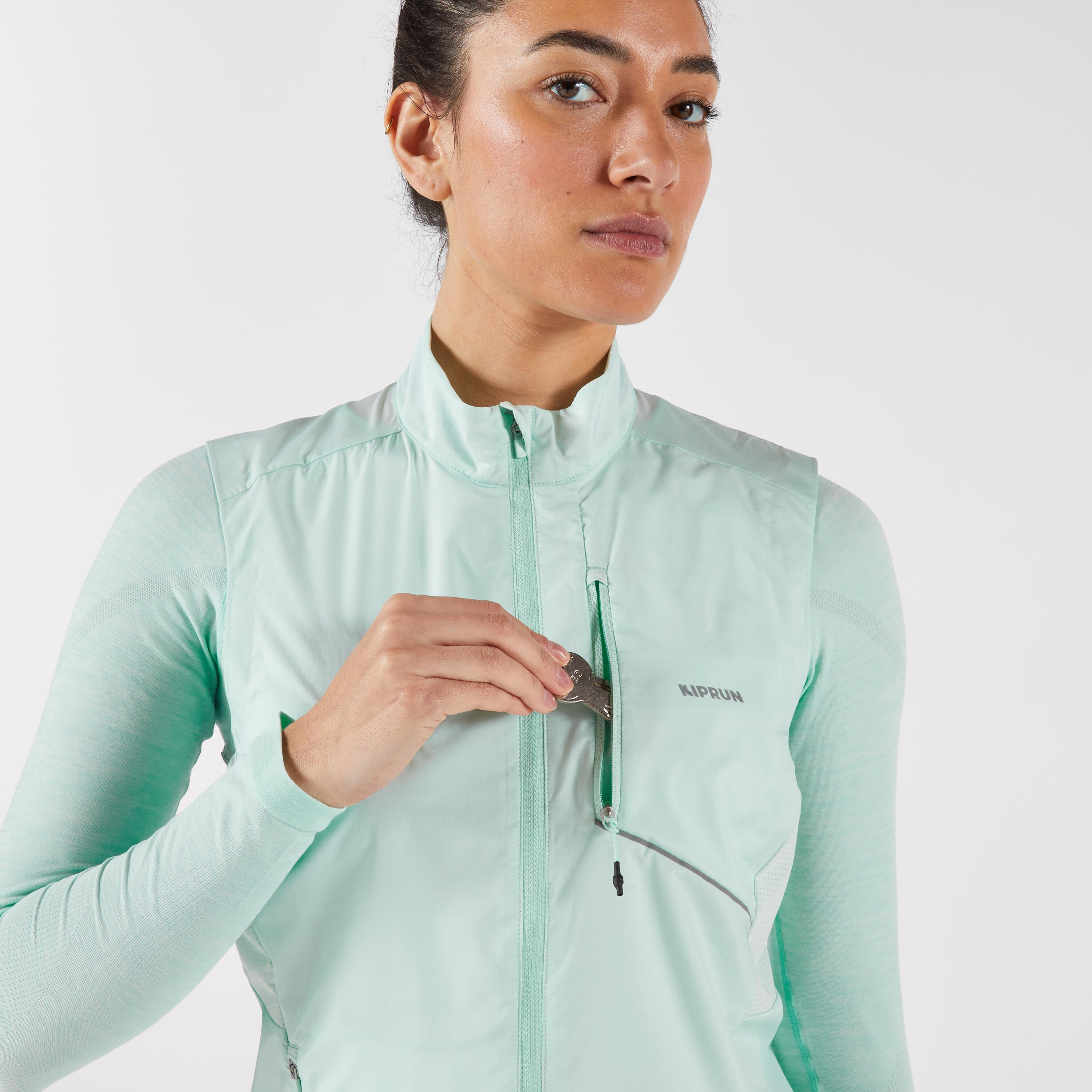 Δεν ξέρετε τι να φορέσετε τις ενδιάμεσες εποχές;Αυτό το αμάνικο, αδιάβροχο, πολύ ελαφρύ και διαπνέον μπουφάν τρεξίματος με 2 ασφαλείς τσέπες.