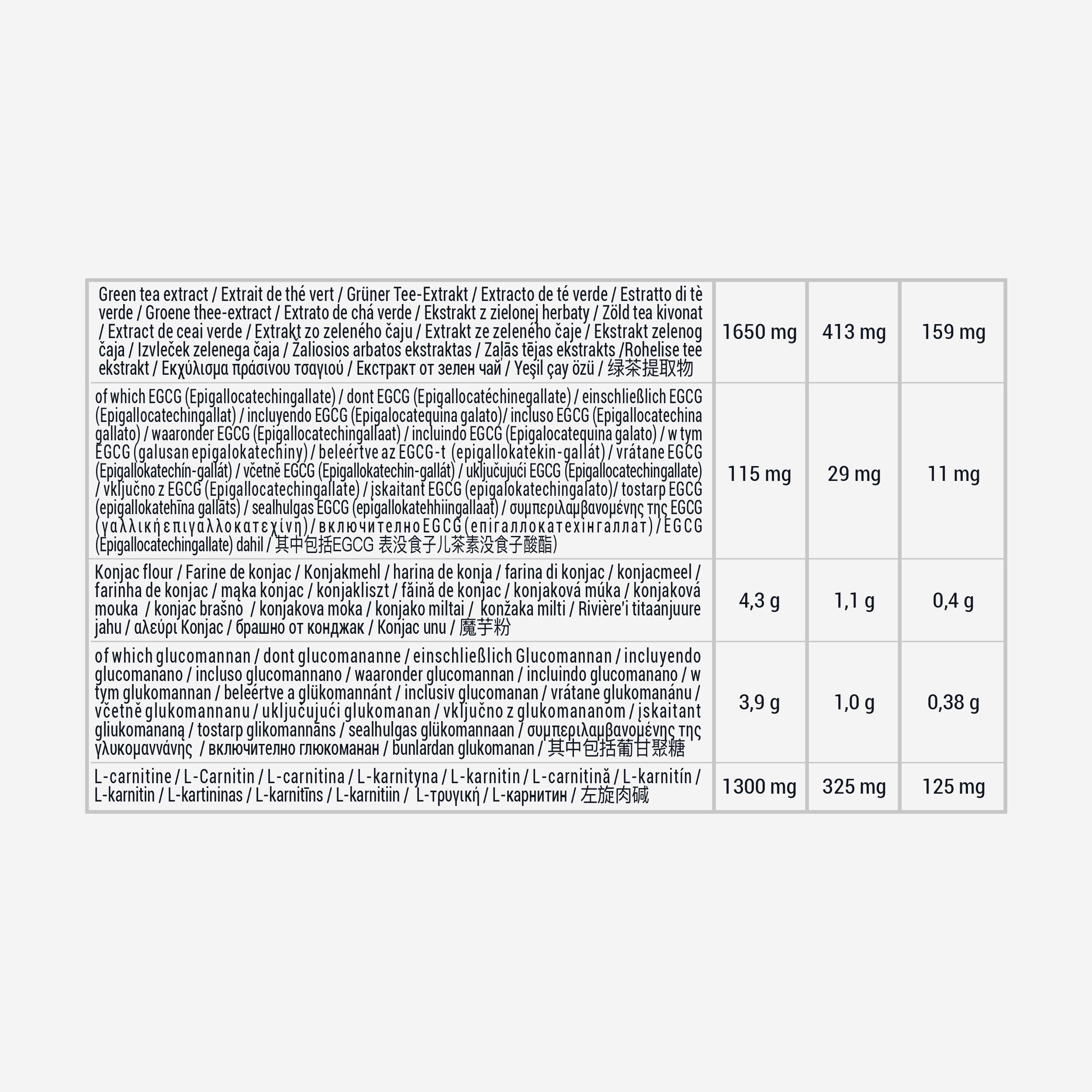 Εκχύλισμα πράσινου τσαγιού:1650 mg | 159 mg | 413 mg