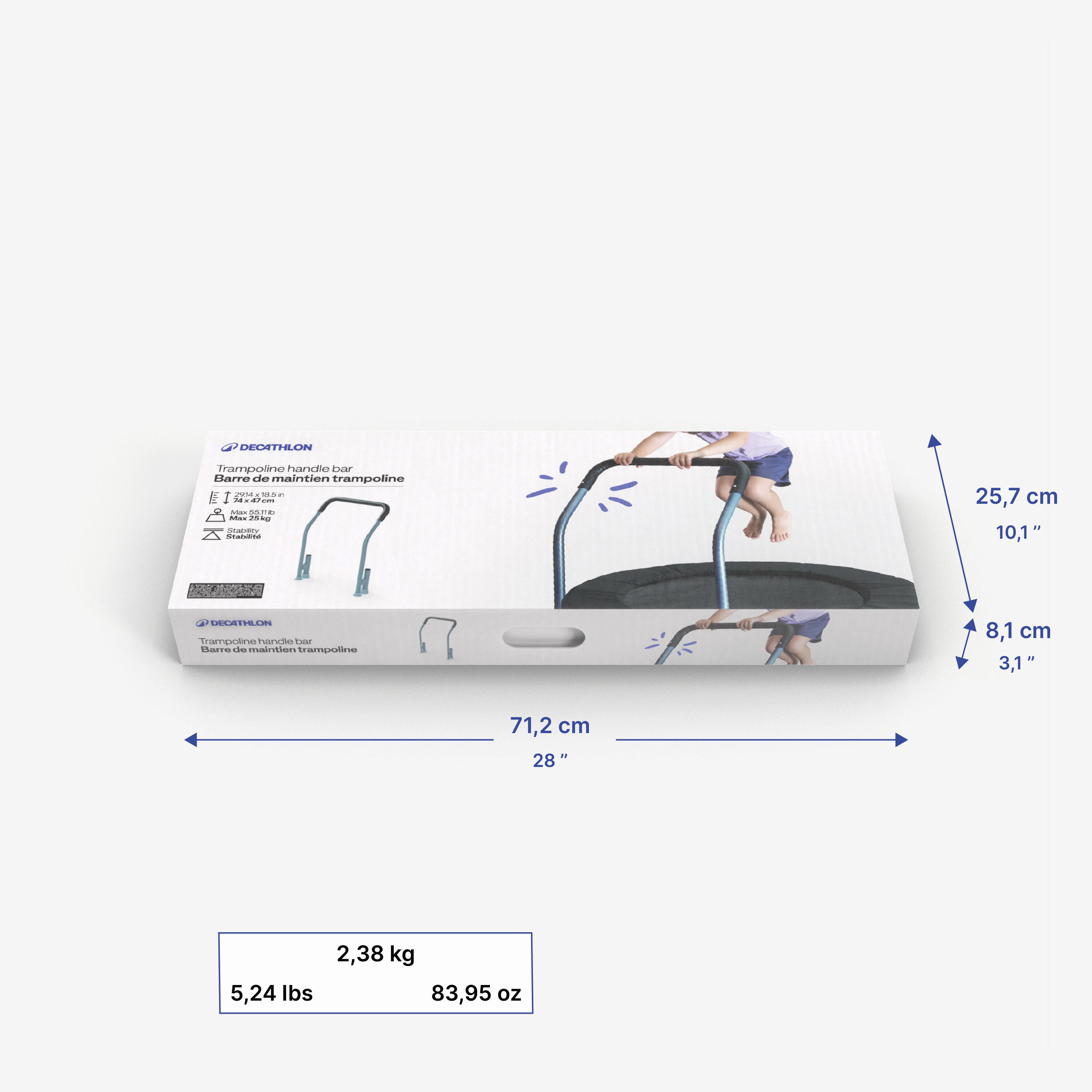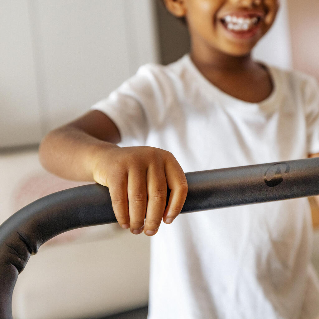 Η λαβή προσαρμόζεται στο μπροστινό μέρος του μίνι τραμπολίνου ώστε το παιδί να μάθει να ελέγχει το σώμα του στον αέρα με ασφάλεια. Συμβάλλει στην ψυχοκινητική ανάπτυξη και αυτονομία του.
