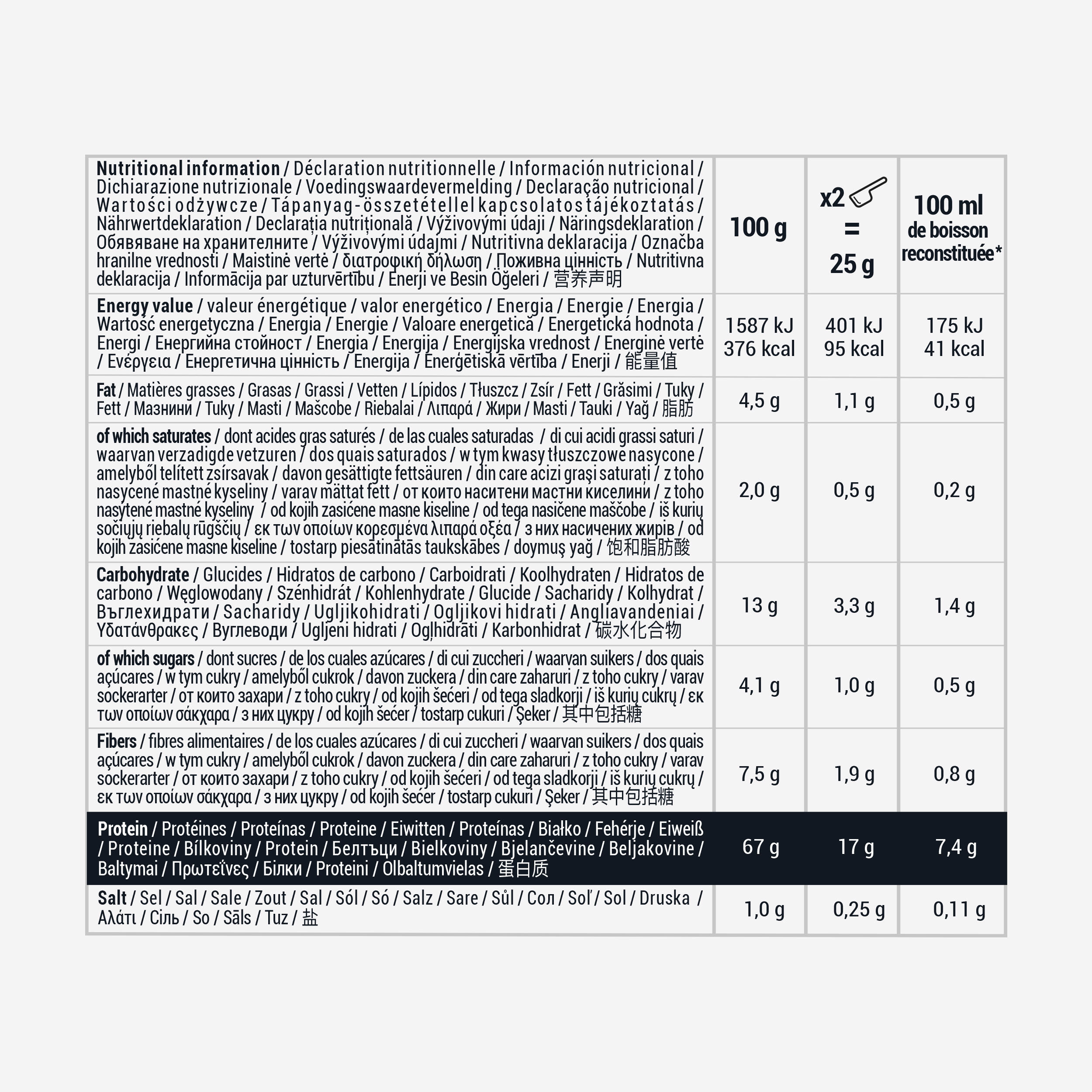 Στο πλαίσιο μια πλούσιας και ισορροπημένης διατροφής, καταναλώστε ένα σέικερ 30 λεπτά μετά την προπόνηση.Μπορεί να καταναλωθεί και πριν από την προπόνηση ή ως σνακ.
