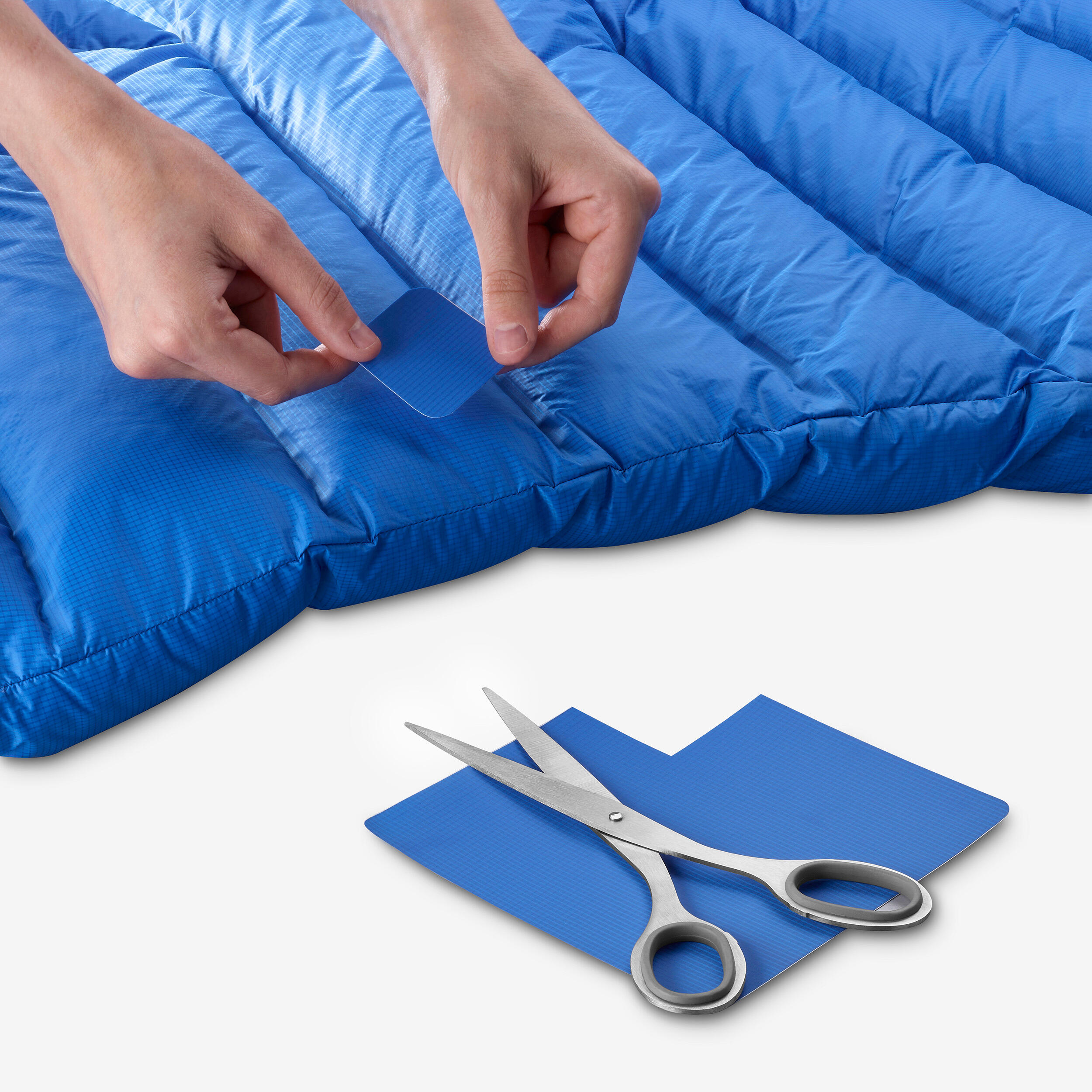 Μπάλωμα πουπουλένιου μπουφάν και υπνόσακου ορειβασίας, μπλε