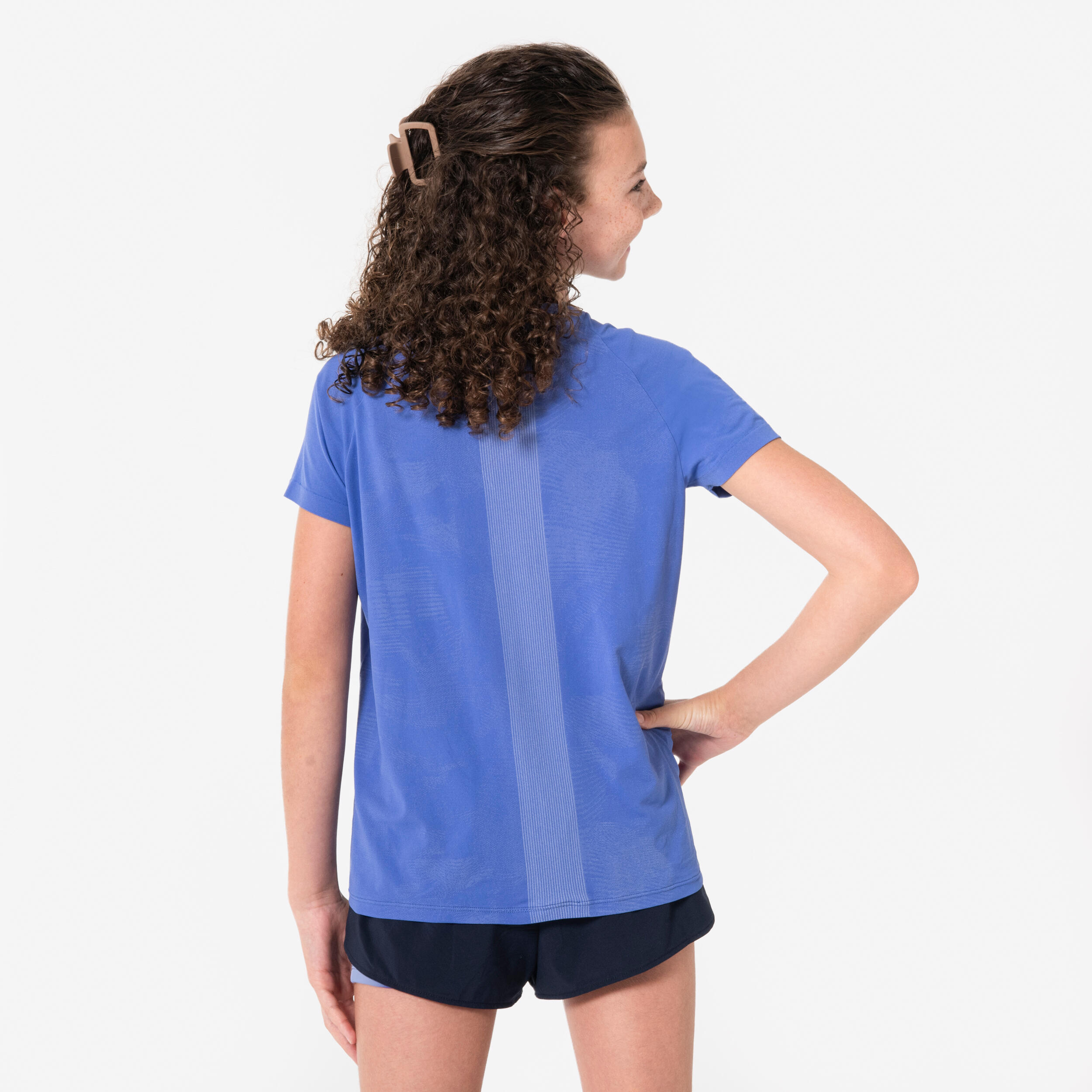 Οι σχεδιαστές μας, όλοι λάτρεις του τρεξίματος, σχεδίασαν αυτό το T-shirt για τρέξιμο με θηλυκή γραμμή ως ένα ελαφρύ top για την κόρη σας όταν έχει ζέστη.