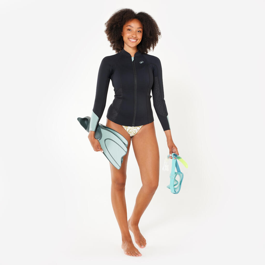 Γυναικείο μακρυμάνικο τοπ snorkelling από φυσικό καουτσούκ Yulex 1,5 mm - Μαύρο