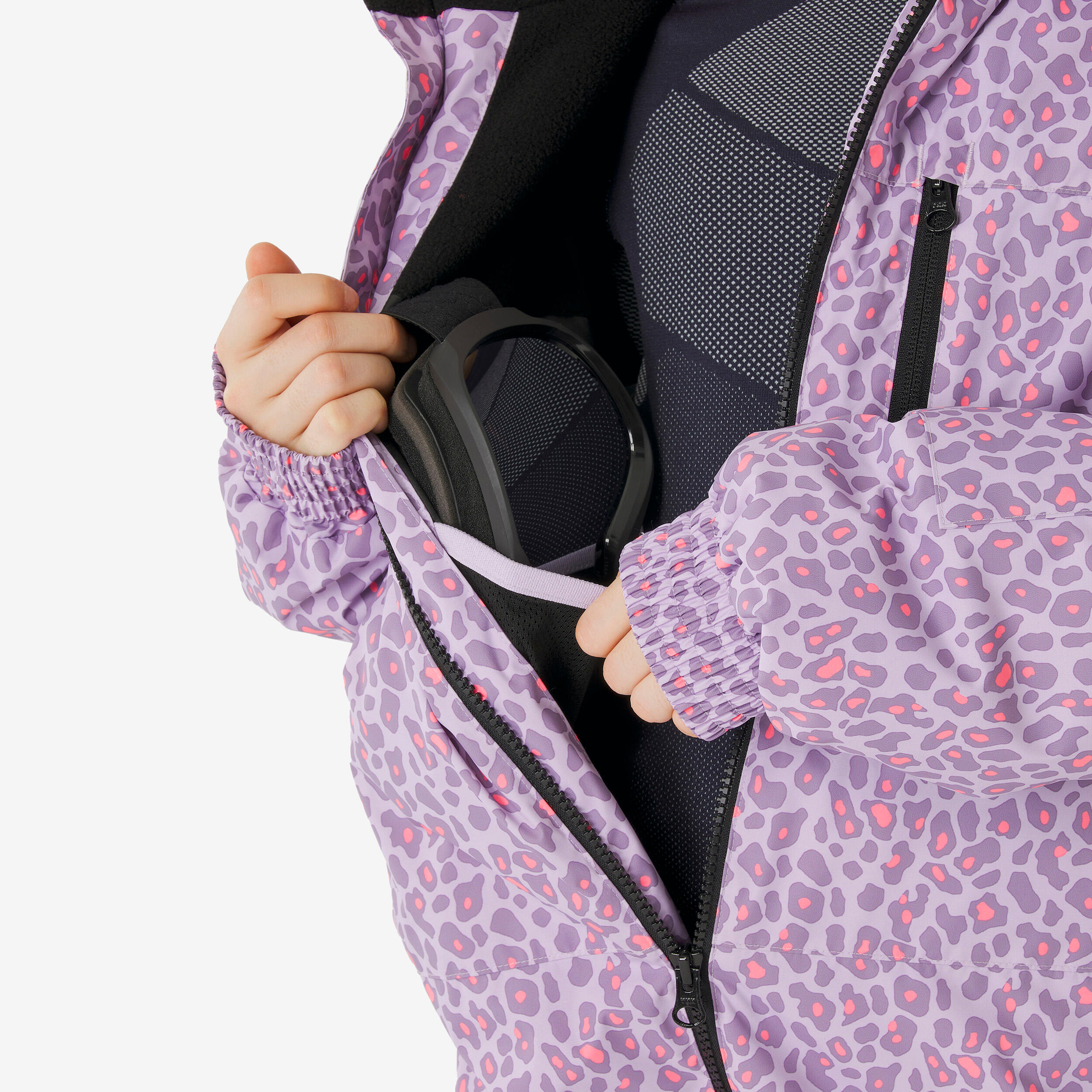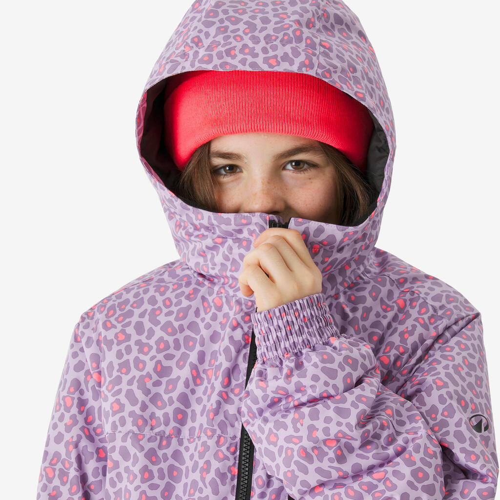 Παιδική ζεστή στολή σκι, 5-13 ετών, SKI100 - Μωβ Λεοπάρ