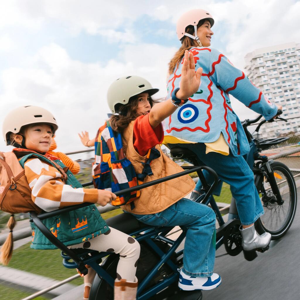 Το ποδήλατο cargo longtail E-THREE 500 θα γίνει ο σύμμαχός σας στην καθημερινότητα: αφήστε τα παιδιά σας στο σχολείο στον δρόμο για τη δουλειά, κάντε τα ψώνια σας ή βγείτε με τους φίλους σας.