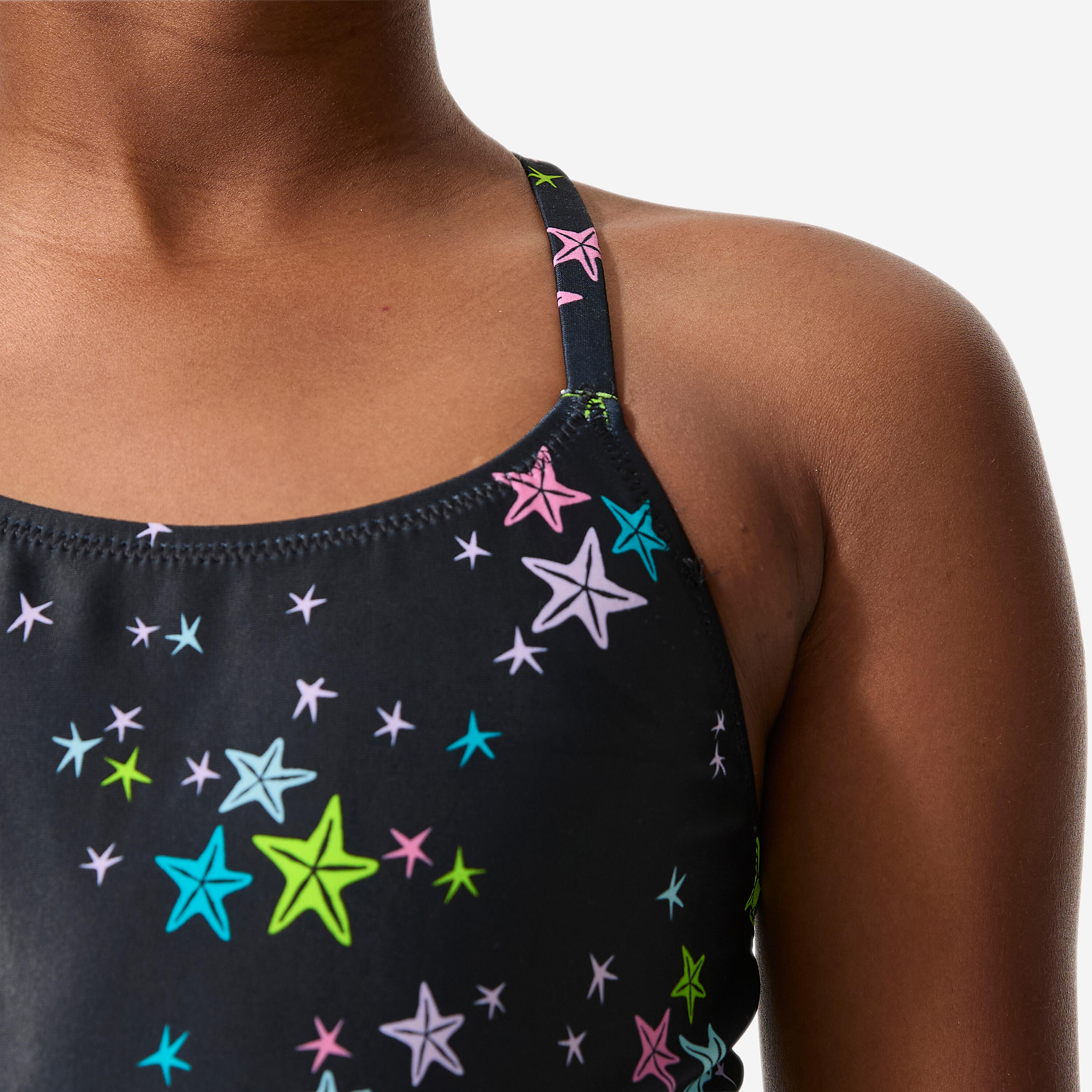 Ένα άνετο ολόσωμο μαγιό για κορίτσια με πρωτότυπο σχέδιο που παρέχει καλή κάλυψη για νεαρές κολυμβήτριες που ξεκινούν τώρα.