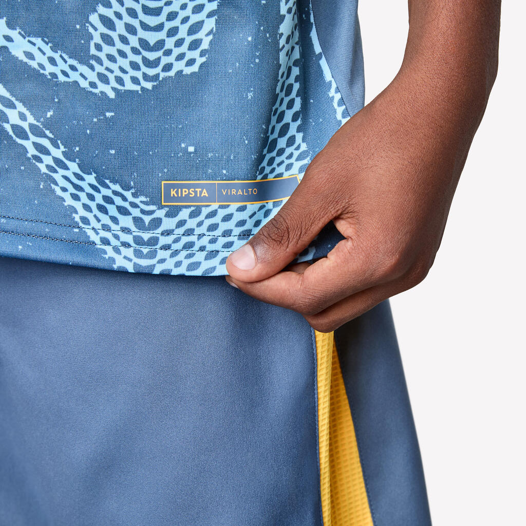 Παιδική κοντομάνικη φανέλα ποδοσφαίρου Viralto Roarrr Cheetah-Μπλε/γκρι/κίτρινο