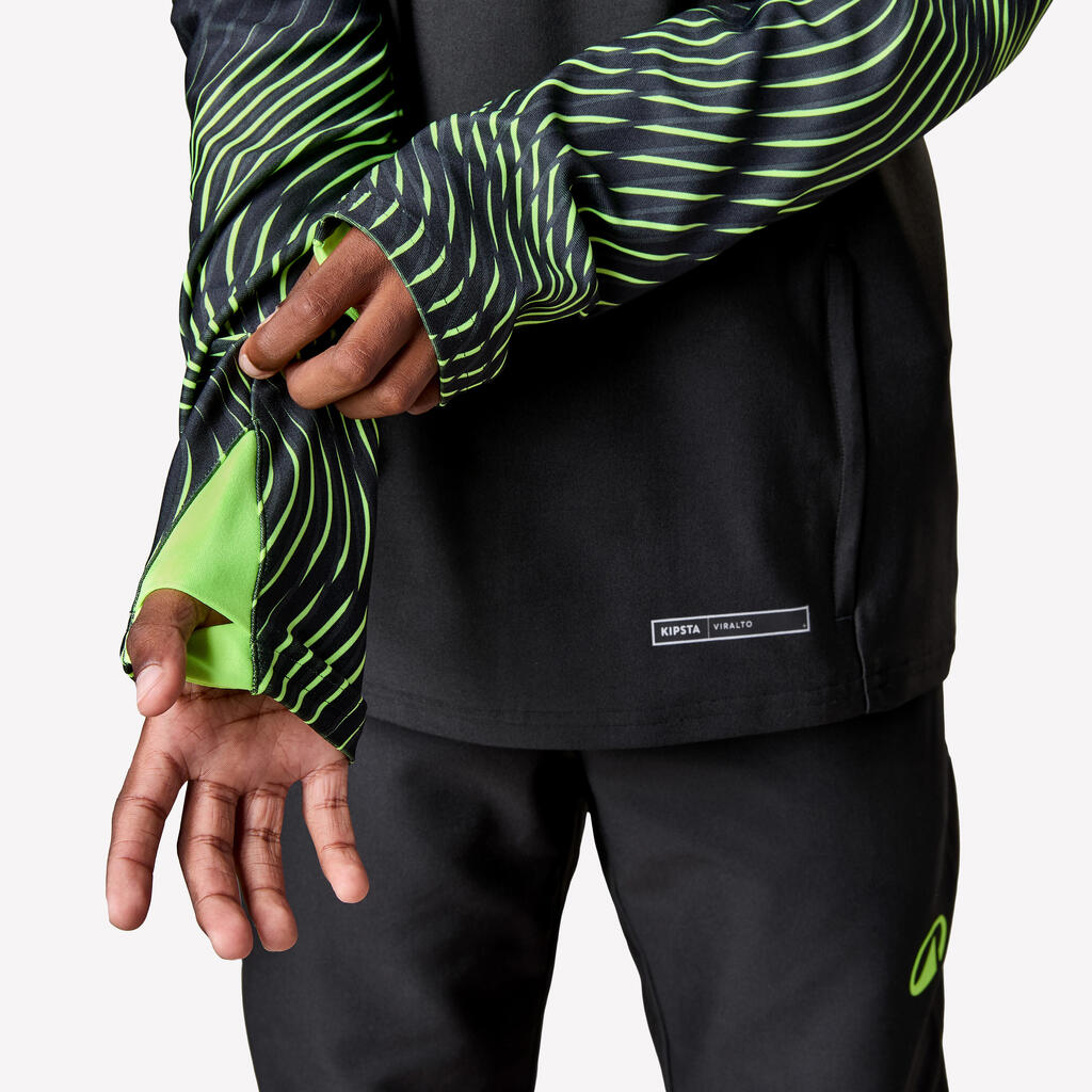 Παιδική φανέλα ποδοσφαίρου 1/2 φερμουάρ Viralto Wave - Μαύρο, Neon κίτρινο