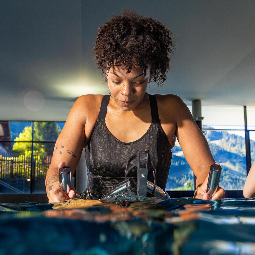 Για να συμβαδίζετε με τον ρυθμό των δυναμικών μαθημάτων aquafitness ή aquabike, αυτό το ολόσωμο μαγιό παρέχει σε όλες τις γυναίκες εξαιρετική στήριξη στήθους.