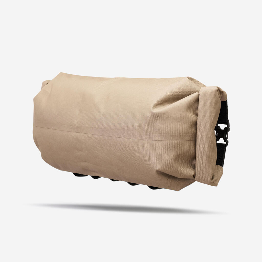 Αυτή η ανθεκτική τσάντα με βαθμολογία στεγανότητας IPX6 σχεδιάστηκε για να χωράει στη θήκη τιμονιού Rockrider (κωδ. 8912323). Η βαλβίδα διευκολύνει την εξαγωγή του αέρα κατά το κλείσιμο της τσάντας