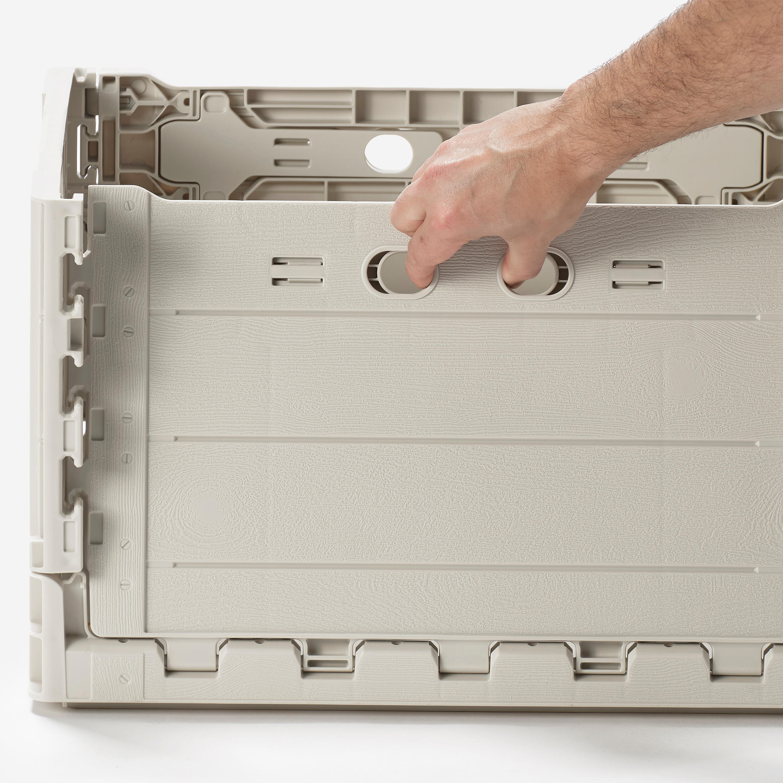 Αυτό το κουτί αποθήκευσης 49 L έχει πολύ μικρό όγκο διπλωμένο. Μετατρέπεται σε τραπέζι χάρη στην αφαιρούμενη επιφάνειά του ενώ διαθέτει ανοίγματα για εύκολη πρόσβαση στα περιεχόμενα ανά πάσα στιγμή.