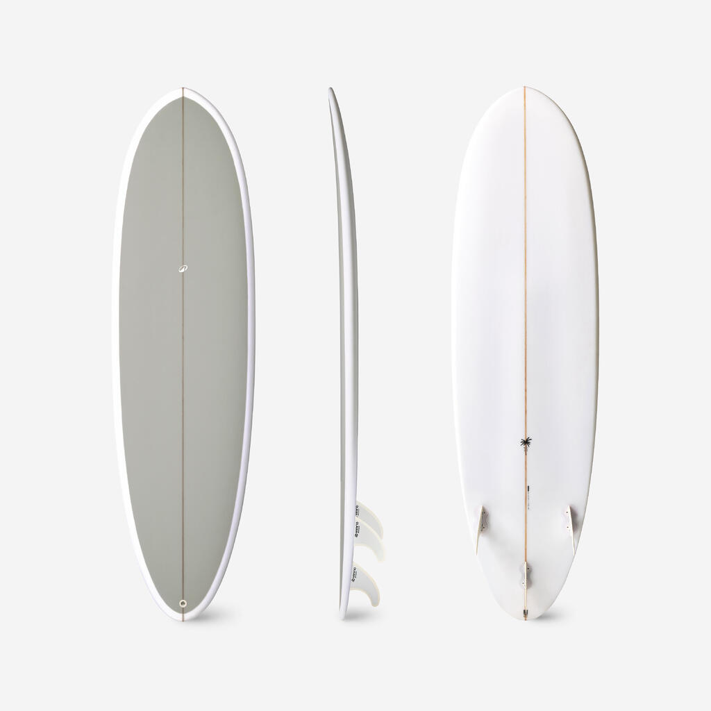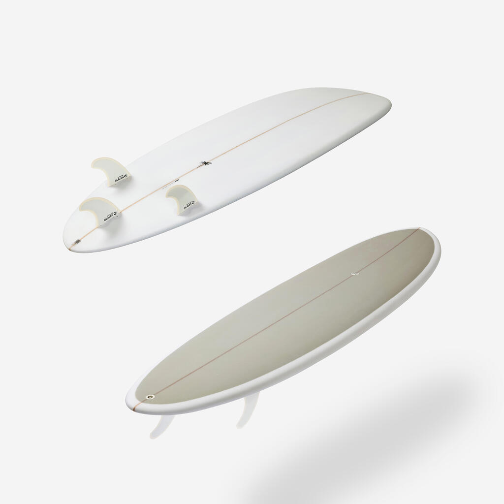 Οι τακτικοί σέρφερ, μεσαίου μεγέθους (ύψος μέσης έως ώμου), σε χαμηλά κύματα σερφάρουν με αυτή την υβριδική σανίδα ρητίνης 6’4.