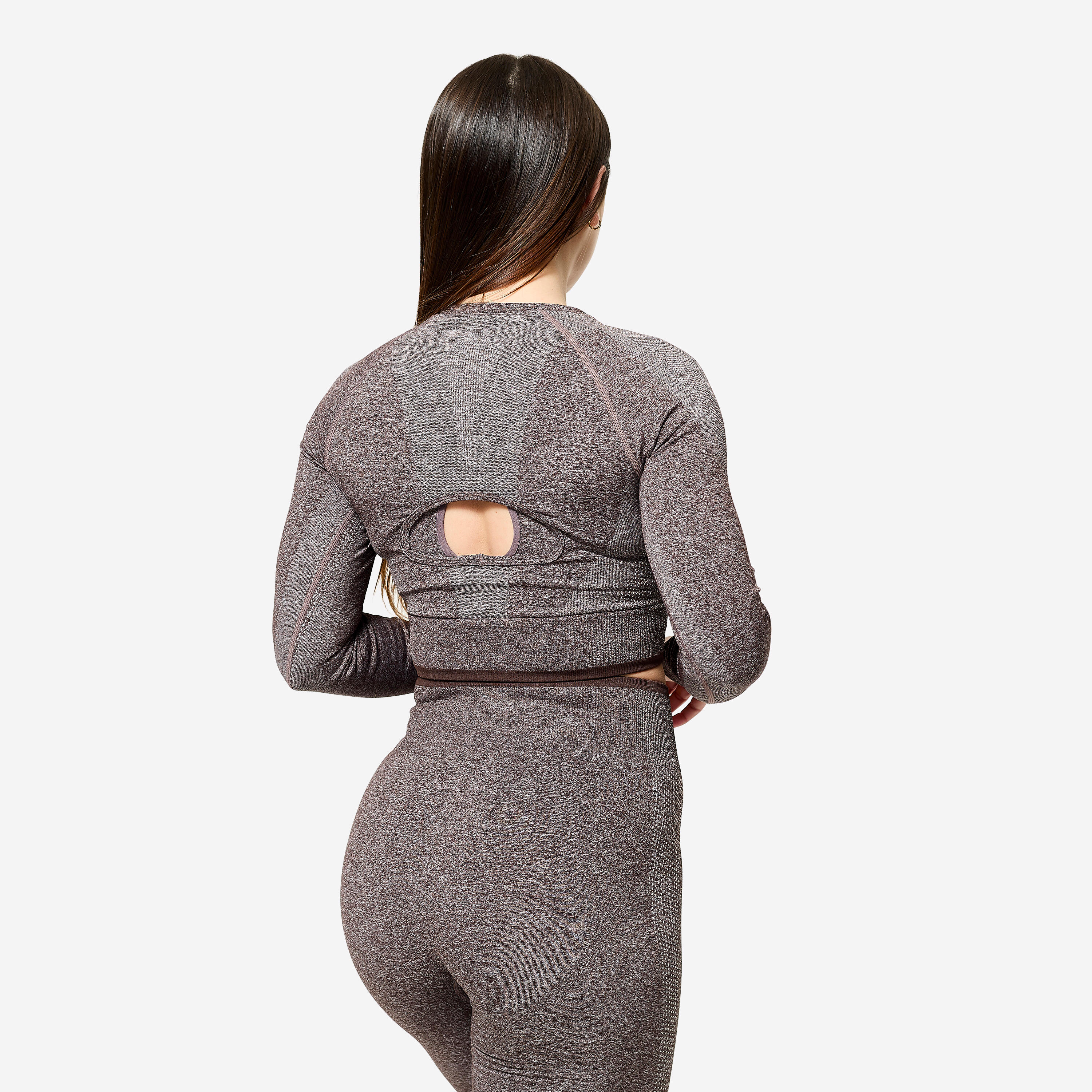 Γυναικείο Μακρυμάνικο Crop Μπλουζάκι για Προπόνηση με Βάρη - Καφέ