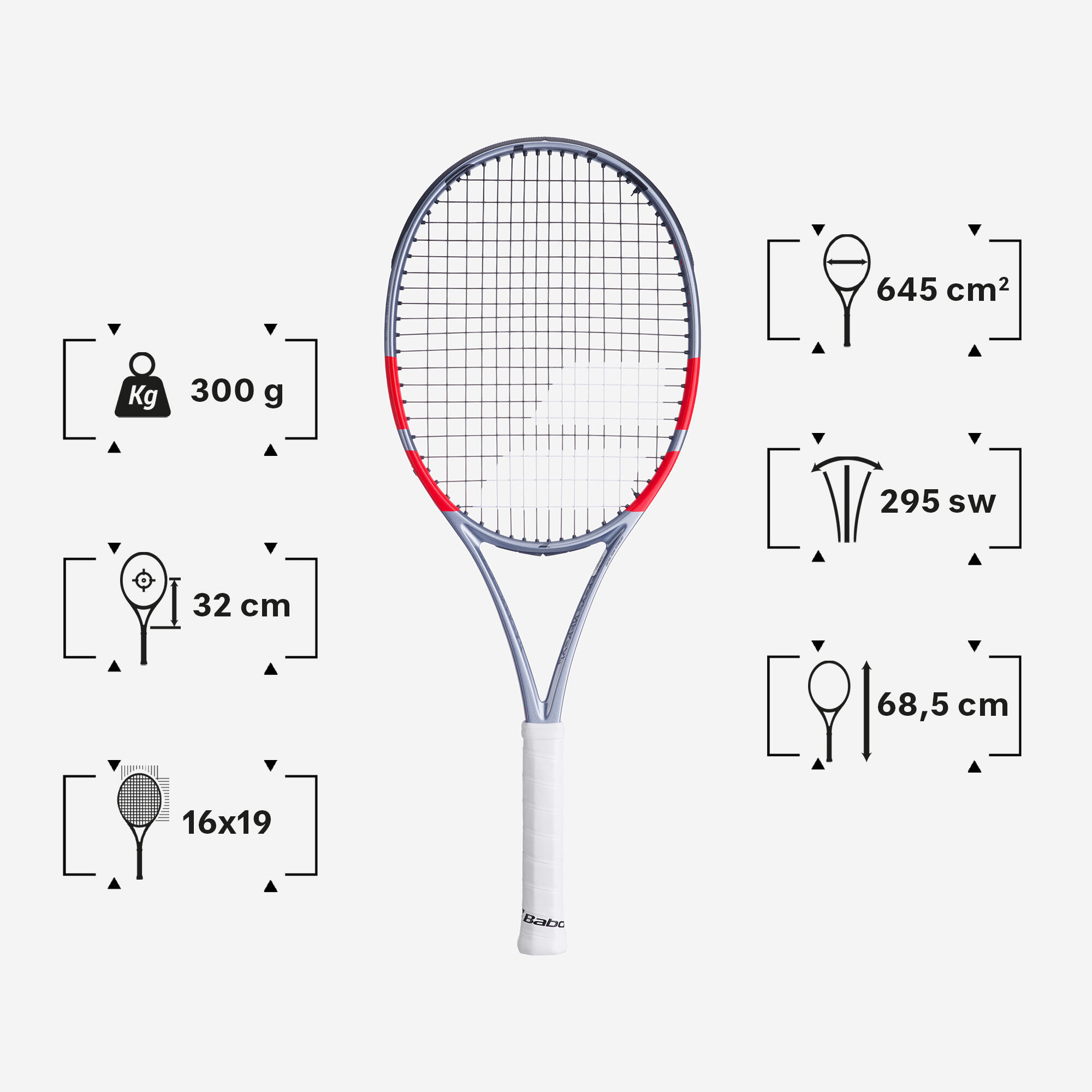 Ισορροπία: Αυτό είναι το σημείο ισορροπίας της ρακέτας, το οποίο μετριέται σε εκατοστά από το κάτω μέρος του άξονα. Όσο μεγαλύτερος ο αριθμός (ρακέτα εμπροσθοβαρής ή σημείο ισορροπίας στην κεφαλή), τόσο πιο ισχυρή και σταθερή η ρακέτα κατά το χτύπημα. Ωστόσο, είναι και πιο δύσκολος ο χειρισμός της. Όσο μικρότερος ο αριθμός (ρακέτα οπισθοβαρής ή σημείο ισορροπίας στη λαβή), τόσο ευκολότερος είναι ο χειρισμός της ρακέτας, αλλά έχετε λιγότερη ισχύ και σταθερότητα.