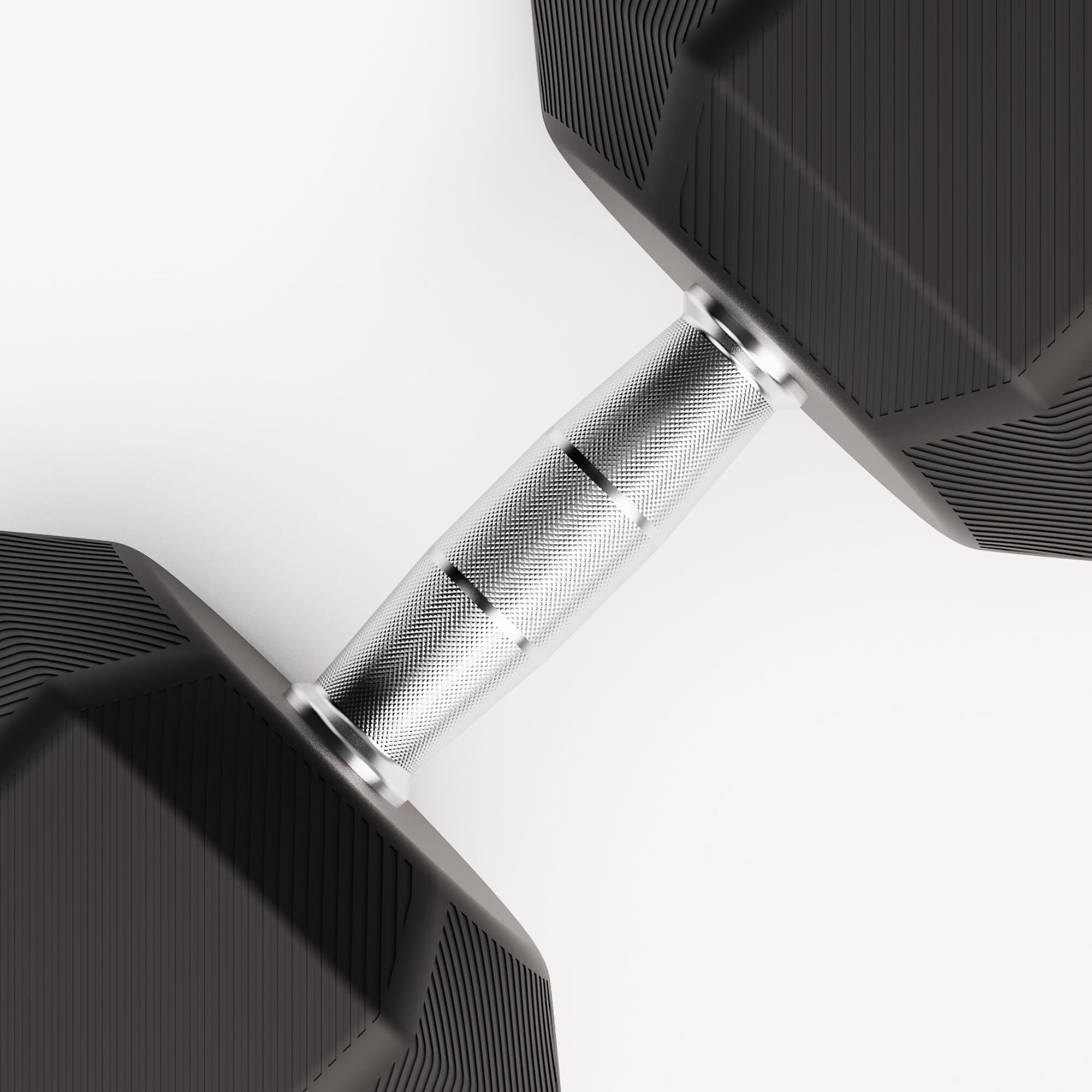 Πετύχετε τους στόχους σας με τον εξάγωνο αλτήρα PRO 32,5 kg νέας γενιάς. Η βαθμονομημένη λαβή των 34 mm διασφαλίζει απόλυτο έλεγχο.