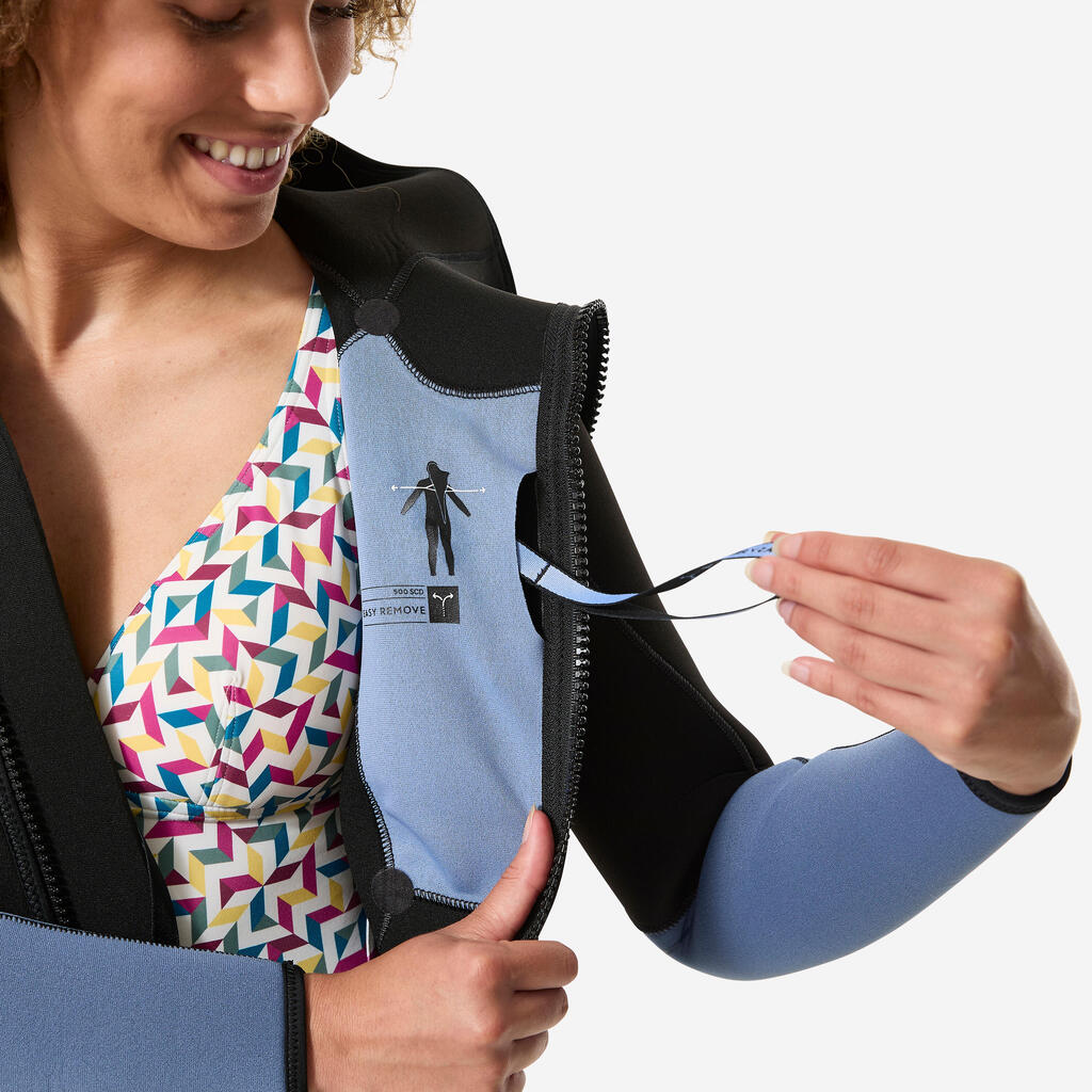 Γυναικεία στολή κατάδυσης SCD 500 με κουκούλα από neoprene 5 mm- Μαύρο/Μπλε