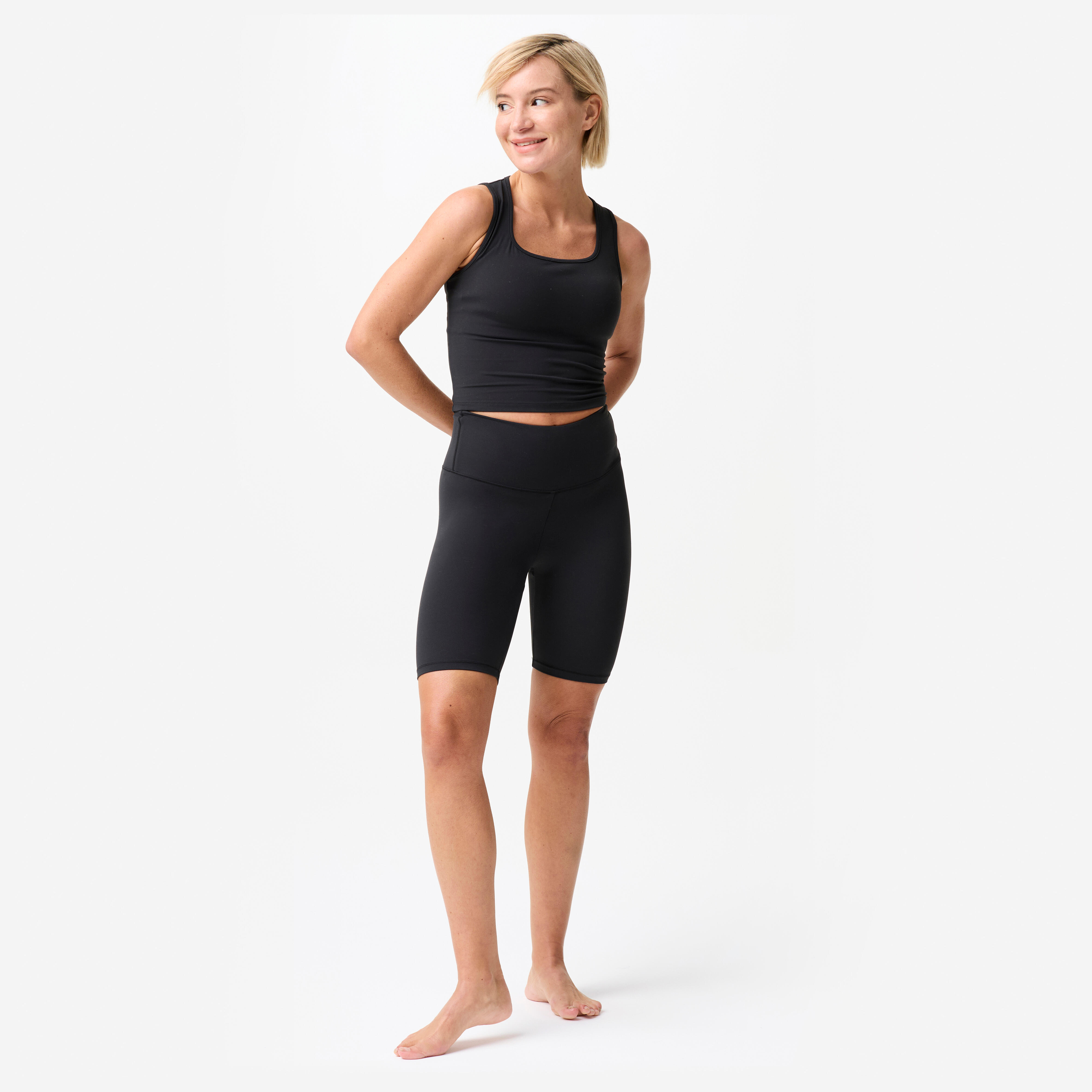 Ελαστική ποδηλατική βερμούδα για yoga που αναβαθμίζει την προπόνησή σας, συνδυάζοντας τεχνικά χαρακτηριστικά και άνεση, για ήπιες κινήσεις με απόλυτη ελευθερία.