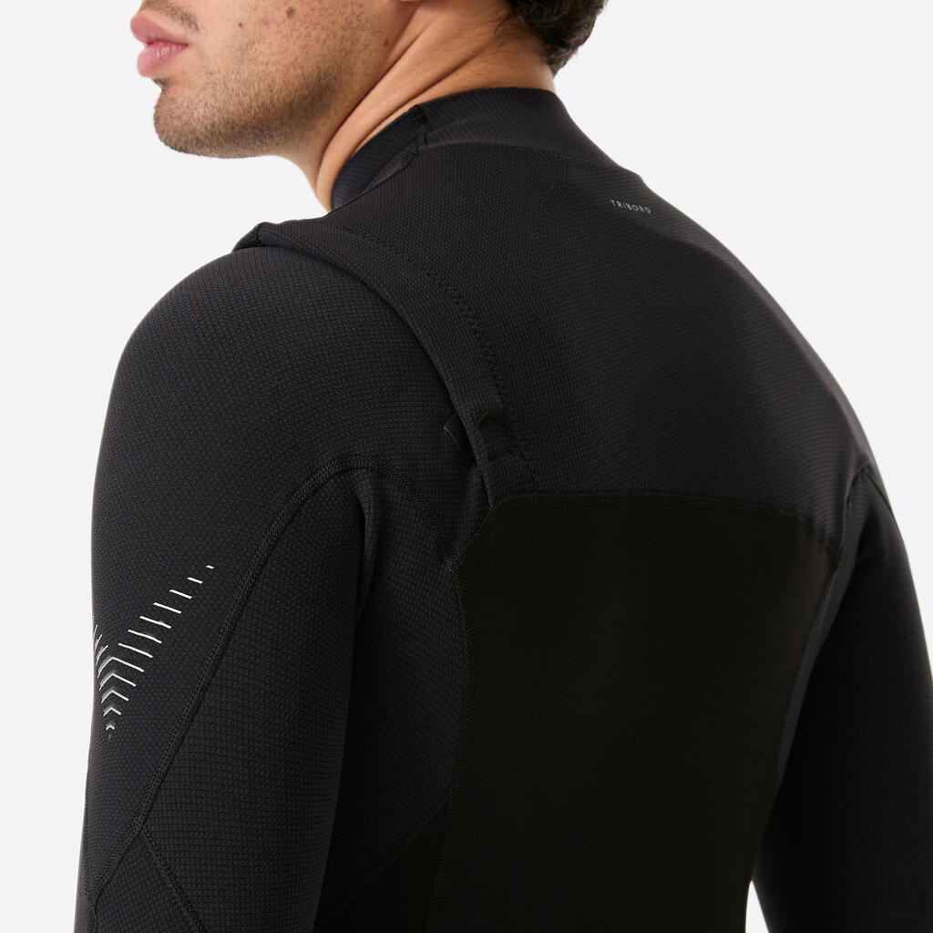 Το σύστημα κλεισίματος με μπροστινό φερμουάρ εξασφαλίζει ελευθερία κινήσεων και παράλληλα παρέχει καλύτερη υδατοστεγανότητα από το κλασικό πίσω φερμουάρ. Το κορδόνι σάς επιτρέπει να προσαρμόζετε το σφίξιμο και να μειώνετε την είσοδο νερού.