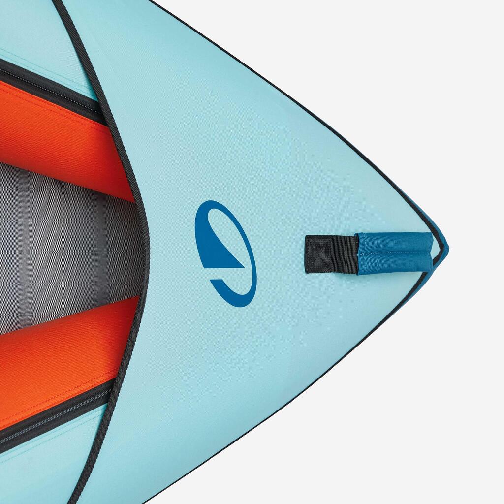 Φουσκωτό καγιάκ σχεδιασμένο για τρία άτομα, ιδανικό για δύο ενήλικες και ένα παιδί. Για δύο άτομα, με άφθονο χώρο για πόδια ή εξοπλισμό. Εγγυημένες ανακαλύψεις και διασκέδαση!