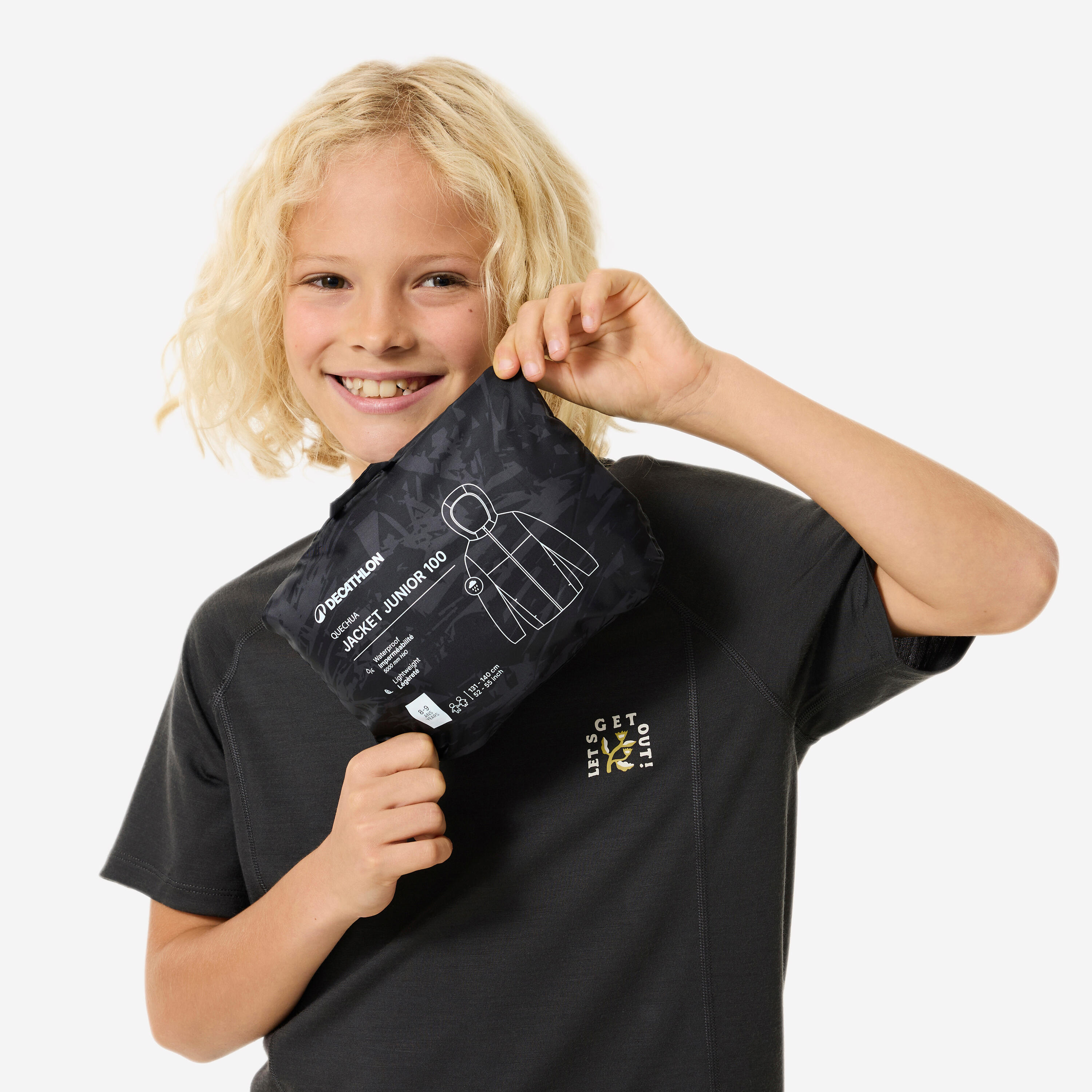 Παιδικό Αδιάβροχο Μπουφάν Πεζοπορίας MH100 με Φερμουάρ 7-15 Ετών - Γκρι