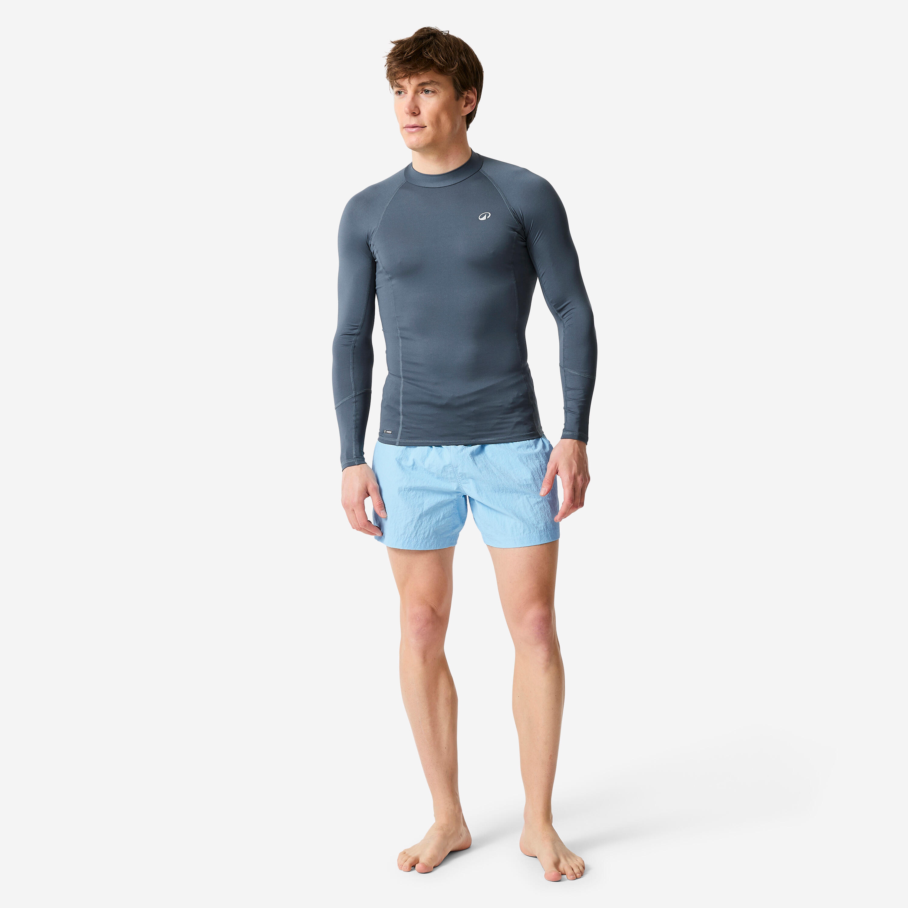 Αυτό το T-shirt αντηλιακής προστασίας διαθέτει θηλιά στο μπροστινό μέρος για να δένεται με το κορδόνι της βερμούδας σας, ώστε να μη σηκώνεται όταν κάνετε surf.Αυτή η λύση συνιστάται για προπονήσεις μέχρι 1 ώρα. Για περισσότερο από 1 ώρα, προτιμήστε το T-shirt UV 500, το οποίο διαθέτει επίσης κορδόνι στους γοφούς για μεγαλύτερη σταθερότητα. Όταν το T-shirt τραβιέται προς τα πάνω προκαλούνται ερεθισμοί χαμηλά στην περιοχή της κοιλιάς.