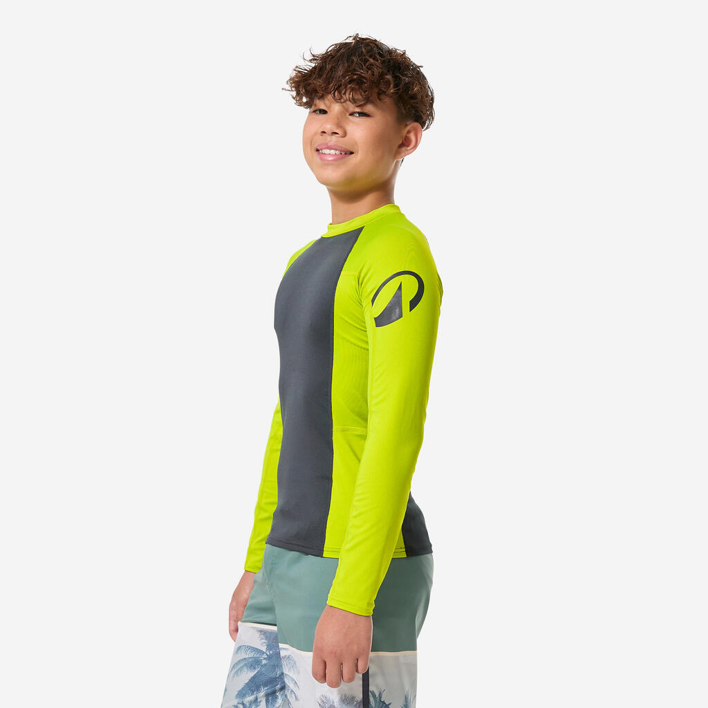 Αυτό το T-shirt αντηλιακής προστασίας διαθέτει θηλιά στο μπροστινό μέρος για να δένεται με το κορδόνι της βερμούδας σας, ώστε να μη σηκώνεται όταν κάνετε surf.Αυτή η λύση συνιστάται για προπονήσεις μέχρι 1 ώρα. Για περισσότερο από 1 ώρα, προτιμήστε το T-shirt UV 500, το οποίο διαθέτει επίσης κορδόνι στους γοφούς για μεγαλύτερη σταθερότητα. Όταν το T-shirt τραβιέται προς τα πάνω προκαλούνται ερεθισμοί χαμηλά στην περιοχή της κοιλιάς.