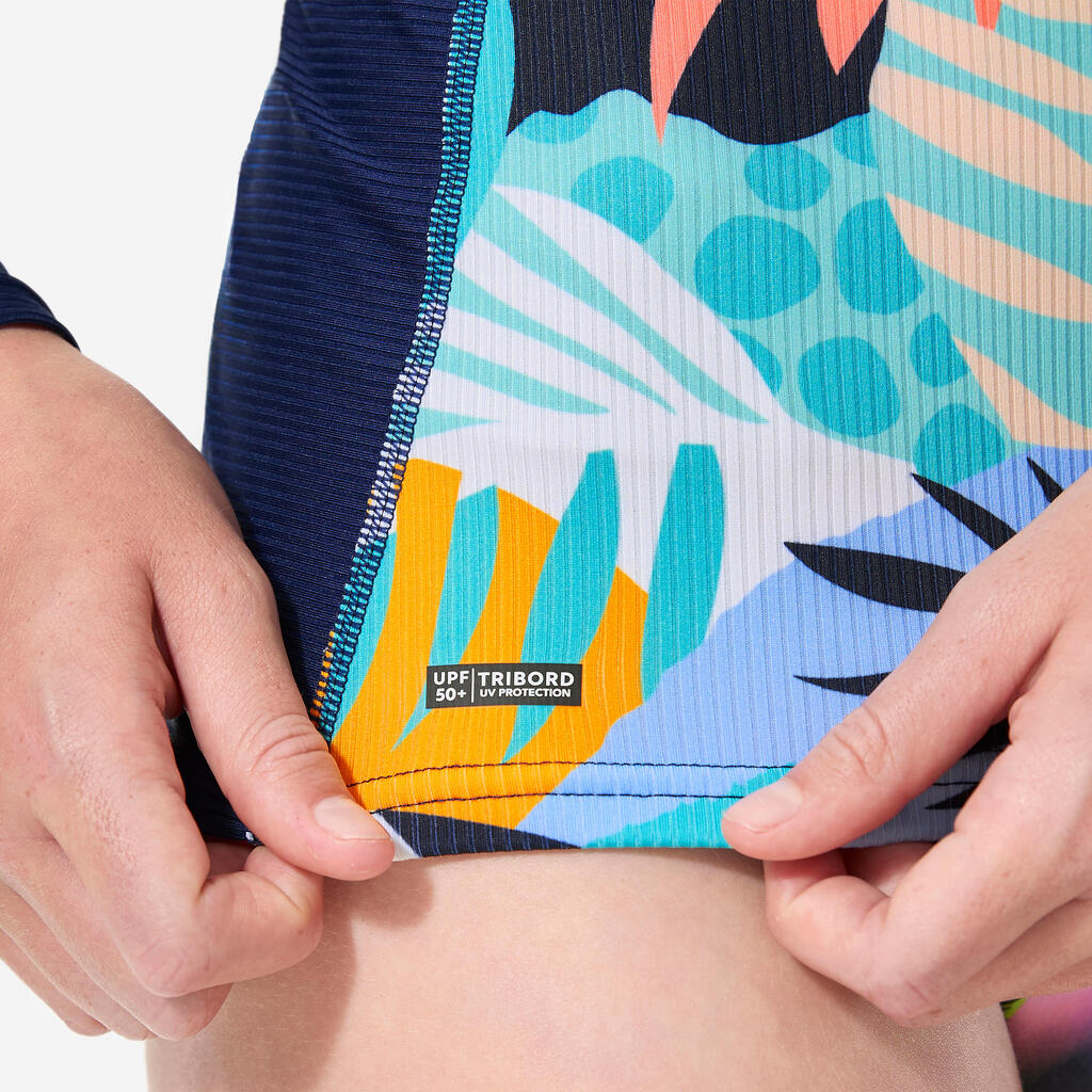 Το ύφασμα αυτού του προϊόντος με προστασία από ακτίνες UV φιλτράρει τουλάχιστον το 98% της ακτινοβολίας UVB και το 95% της ακτινοβολίας UVA (UPF 50+). Έτσι, εγγυάται αποτελεσματική προστασία από τον ήλιο. Μπορεί να χρησιμοποιηθεί μέσα και έξω από το νερό, για όλα τα θαλάσσια σπορ. Χάρη στην πυκνότητα των υφασμάτινων ινών φιλτράρονται οι ακτίνες UV για προστασία μακράς διάρκειας ακόμα και μετά το πλύσιμο.