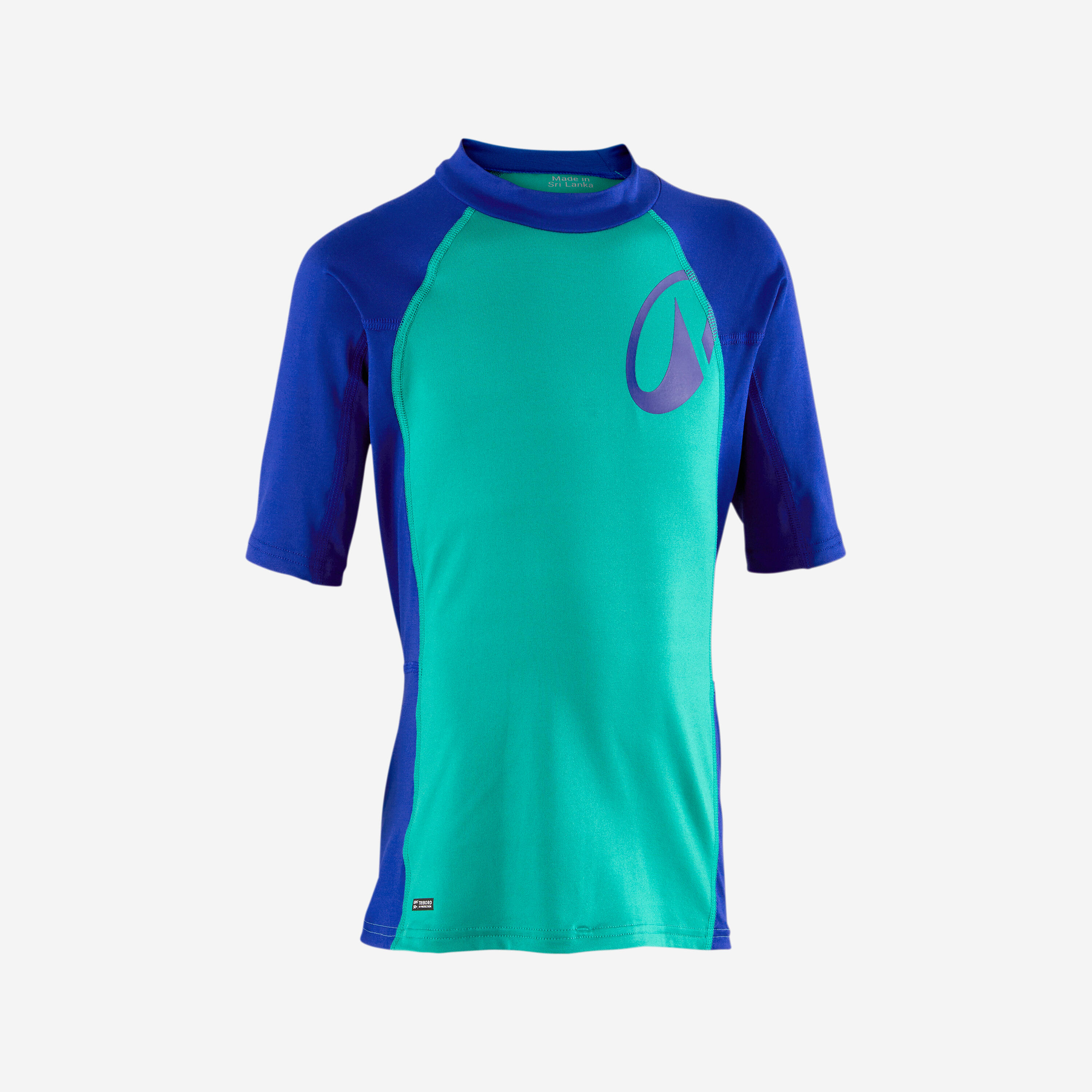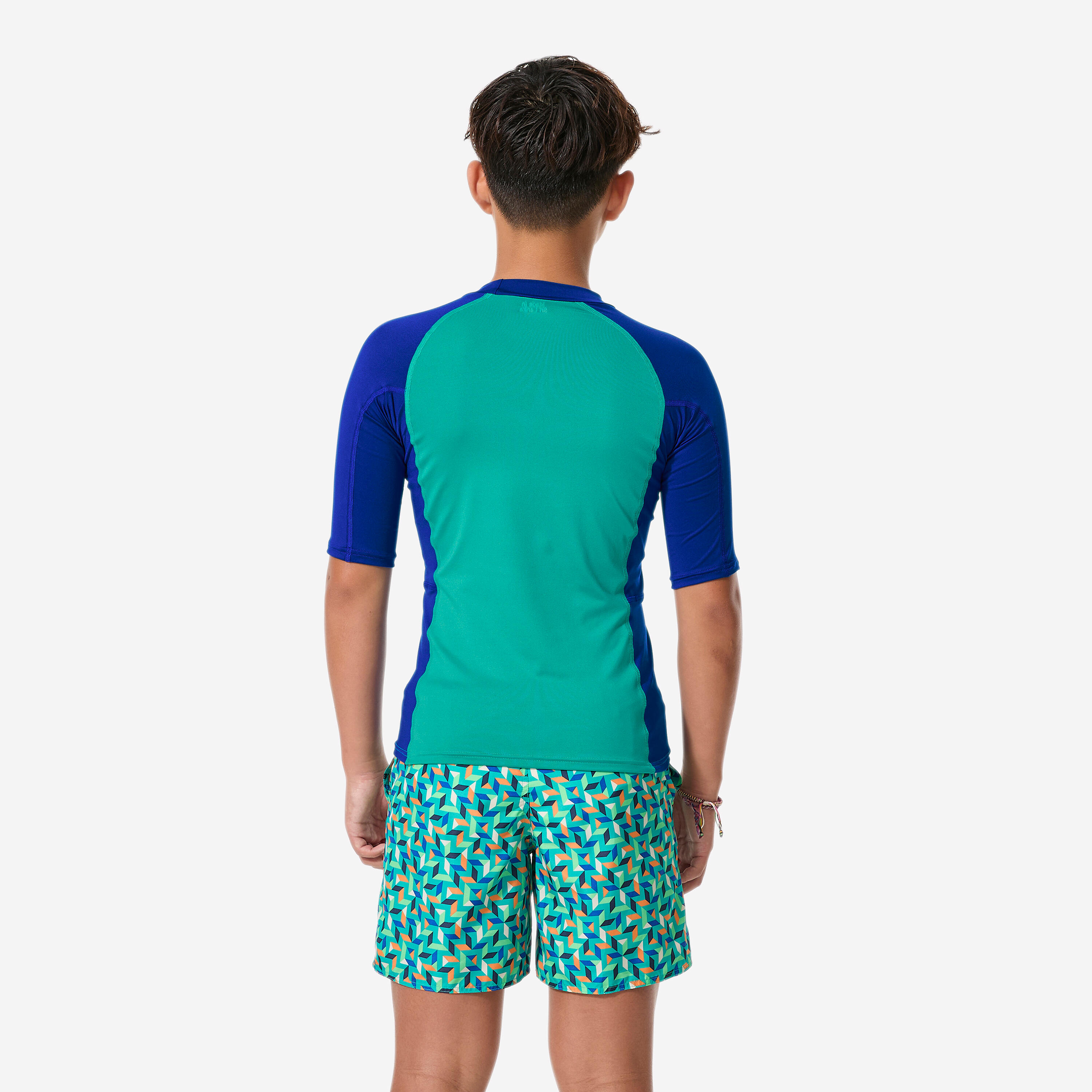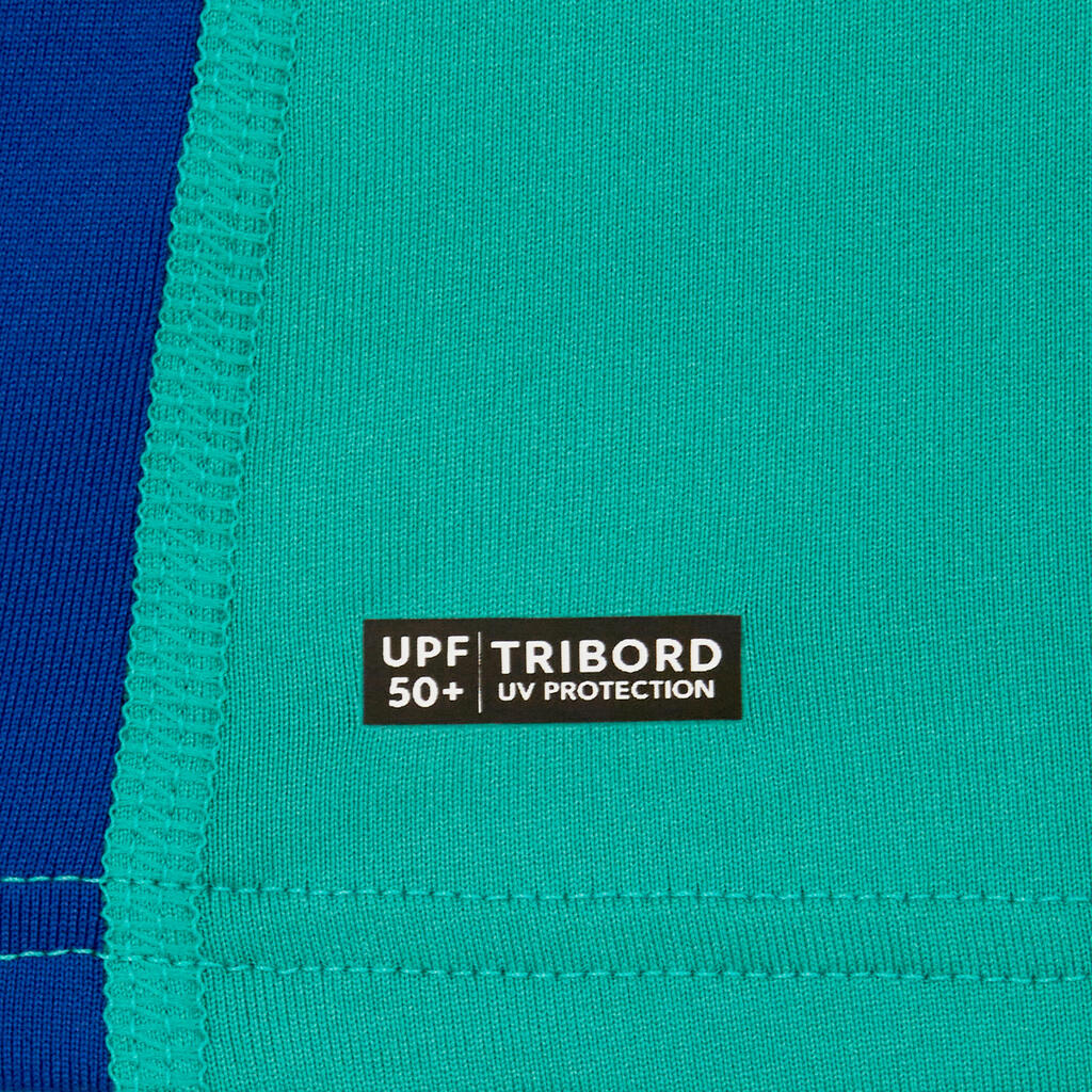 Αγορίστικο κοντομάνικο T-shirt με προστασία UV για surf - 500 μπλε/πράσινο