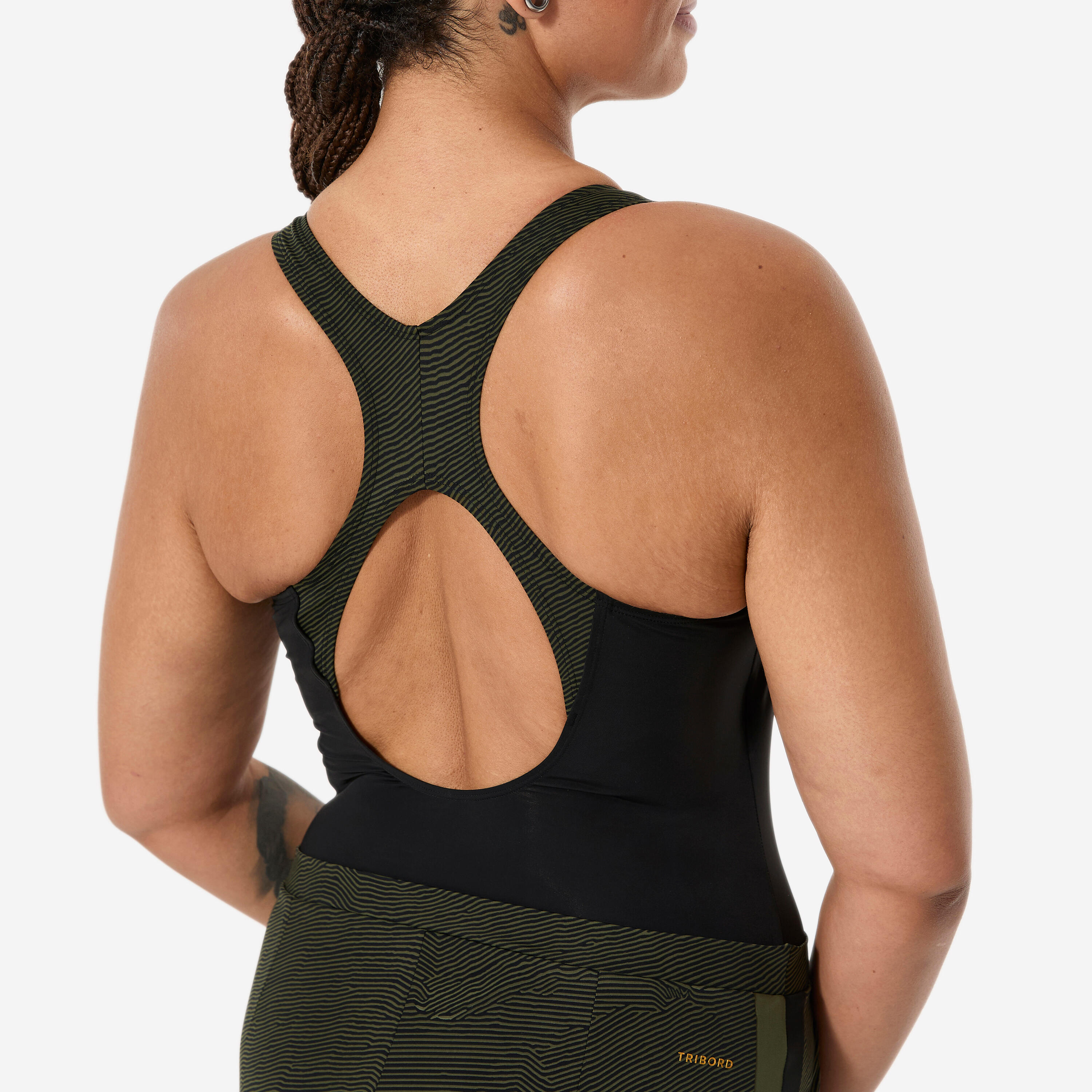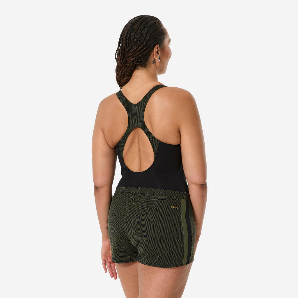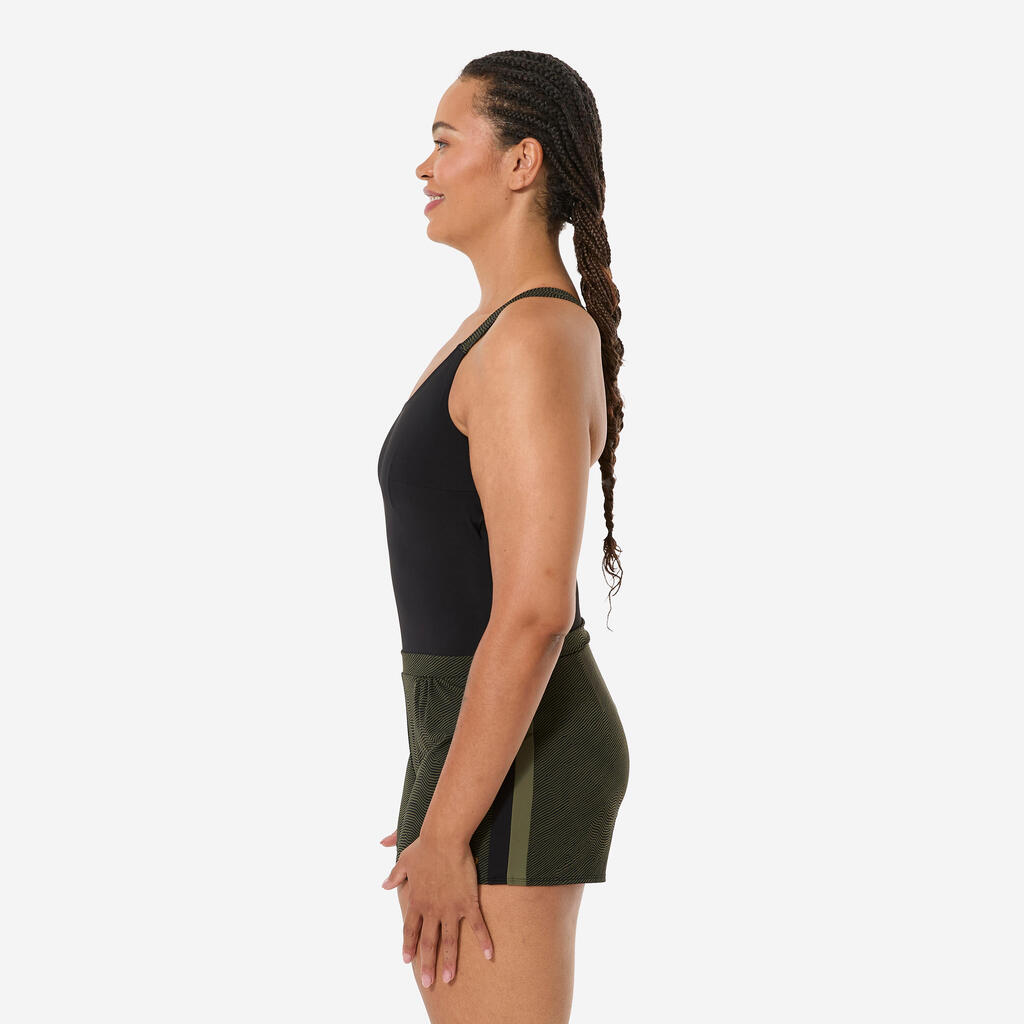 Γυναικείο Ολόσωμο Μαγιό με Σορτς για Aquafitness, Elea Sono Μαύρο/Χακί