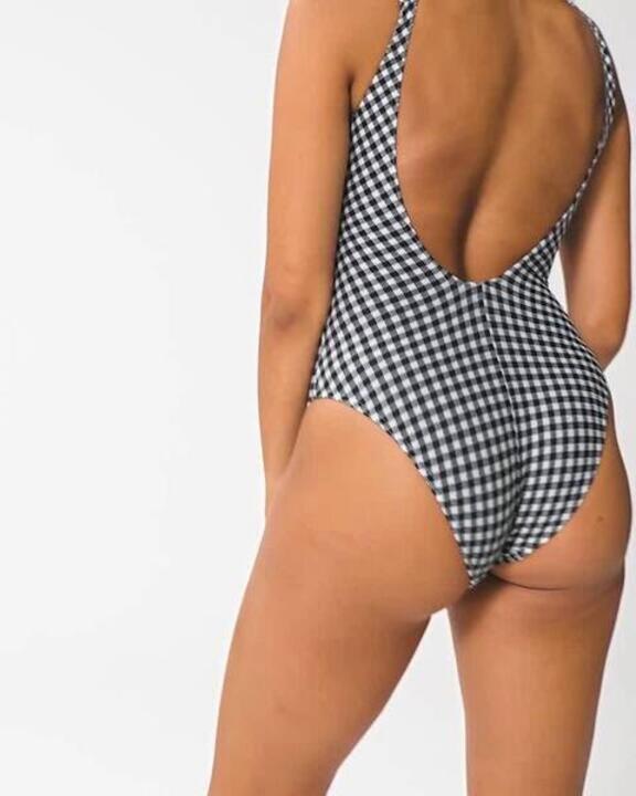 Γυναικείο ολόσωμο μαγιό με ανάγλυφη υφή - Aurely vichy μαύρο και λευκό