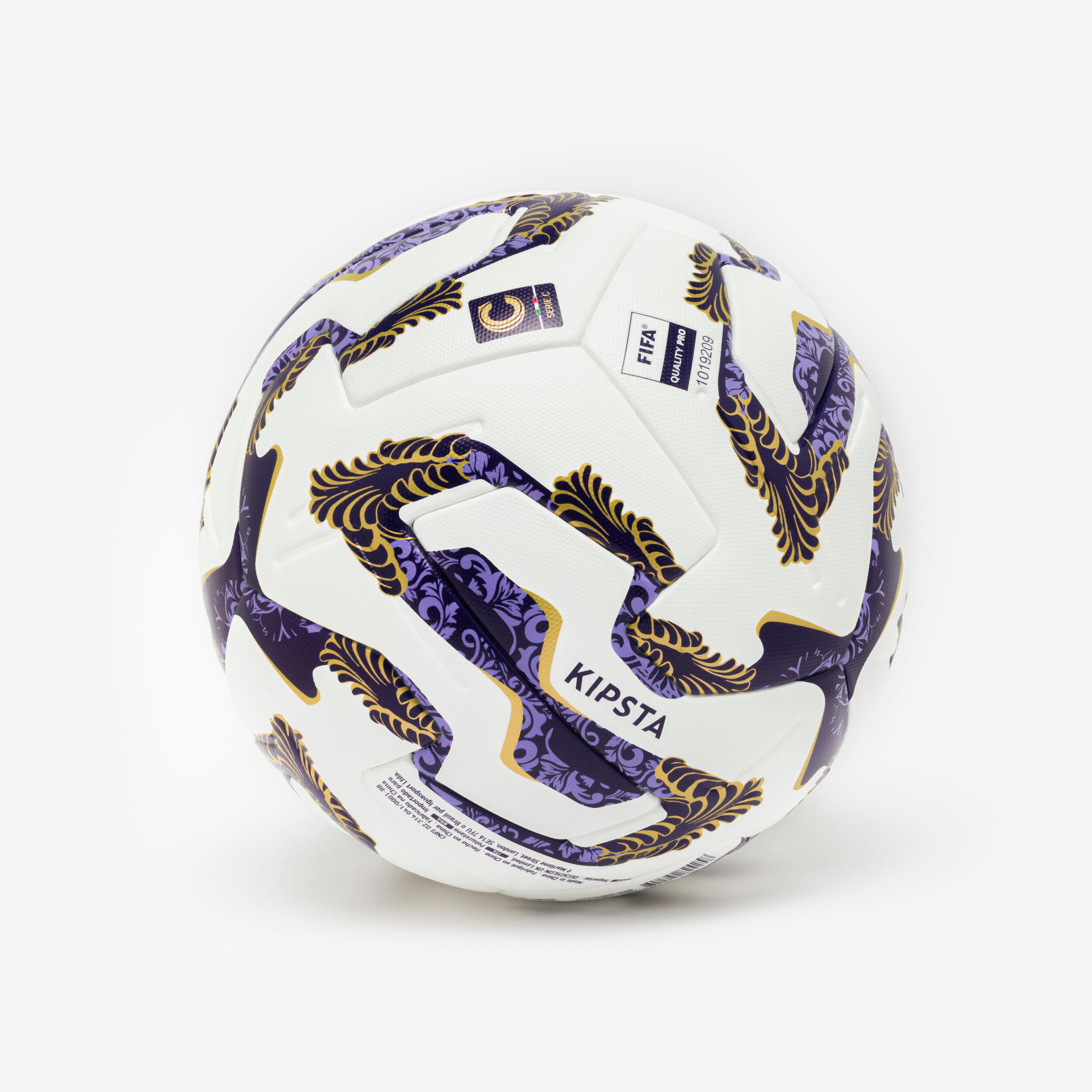 Αυτή η θερμοκολλημένη μπάλα σχεδιάστηκε για αγώνες κορυφαίου επιπέδου. Οι μικροΐνες, ο αφρός και ο αυλακώσεις προσφέρουν μια μοναδική αίσθηση στο παιχνίδι. Αυτή η μπάλα αντικατοπτρίζει την τεχνογνωσία μας και ικανοποιεί τις ανάγκες των πιο απαιτητικών παικτών, ιδίως τον τερματοφυλάκων. 100% αποκλειστικό σχέδιο Decathlon Kipsta.