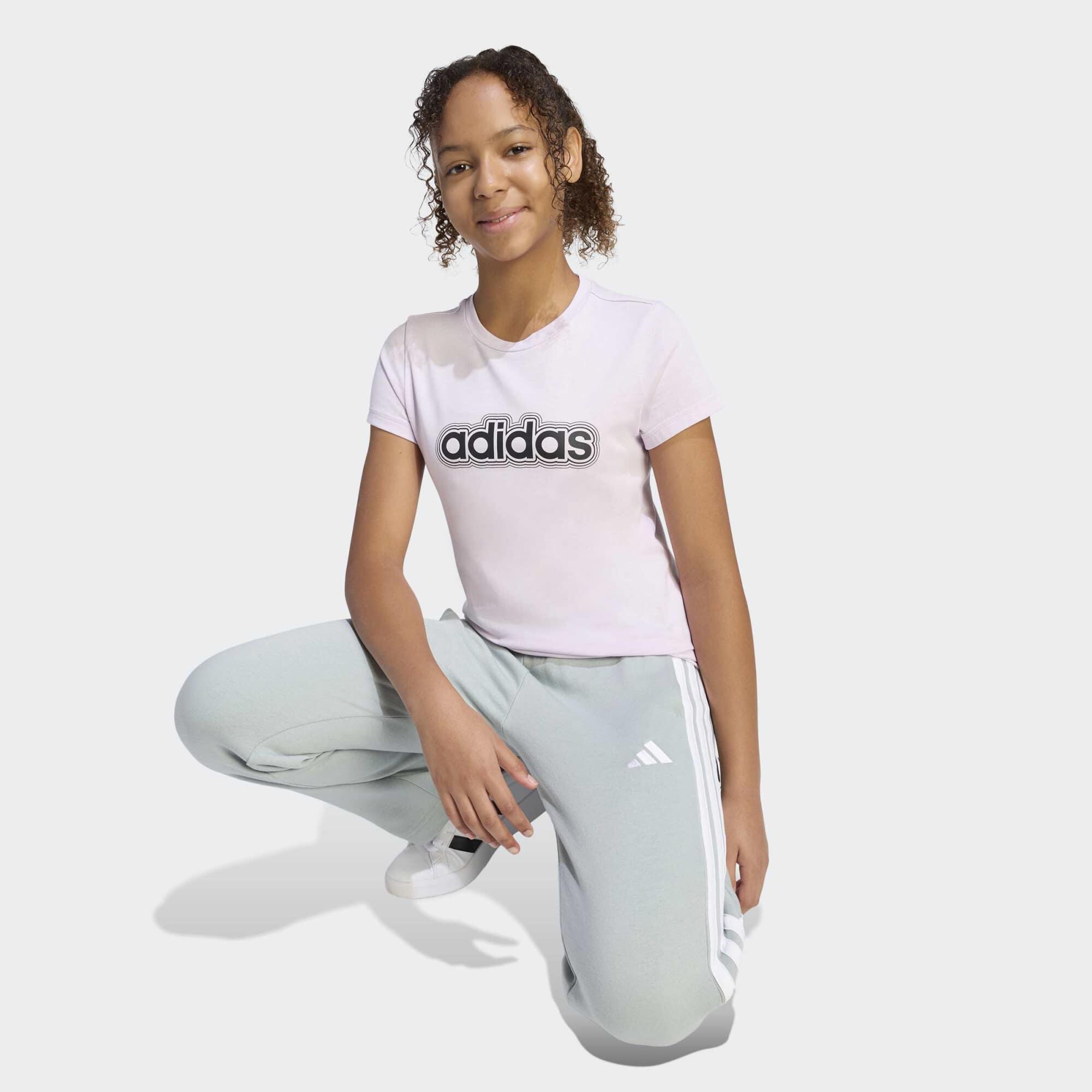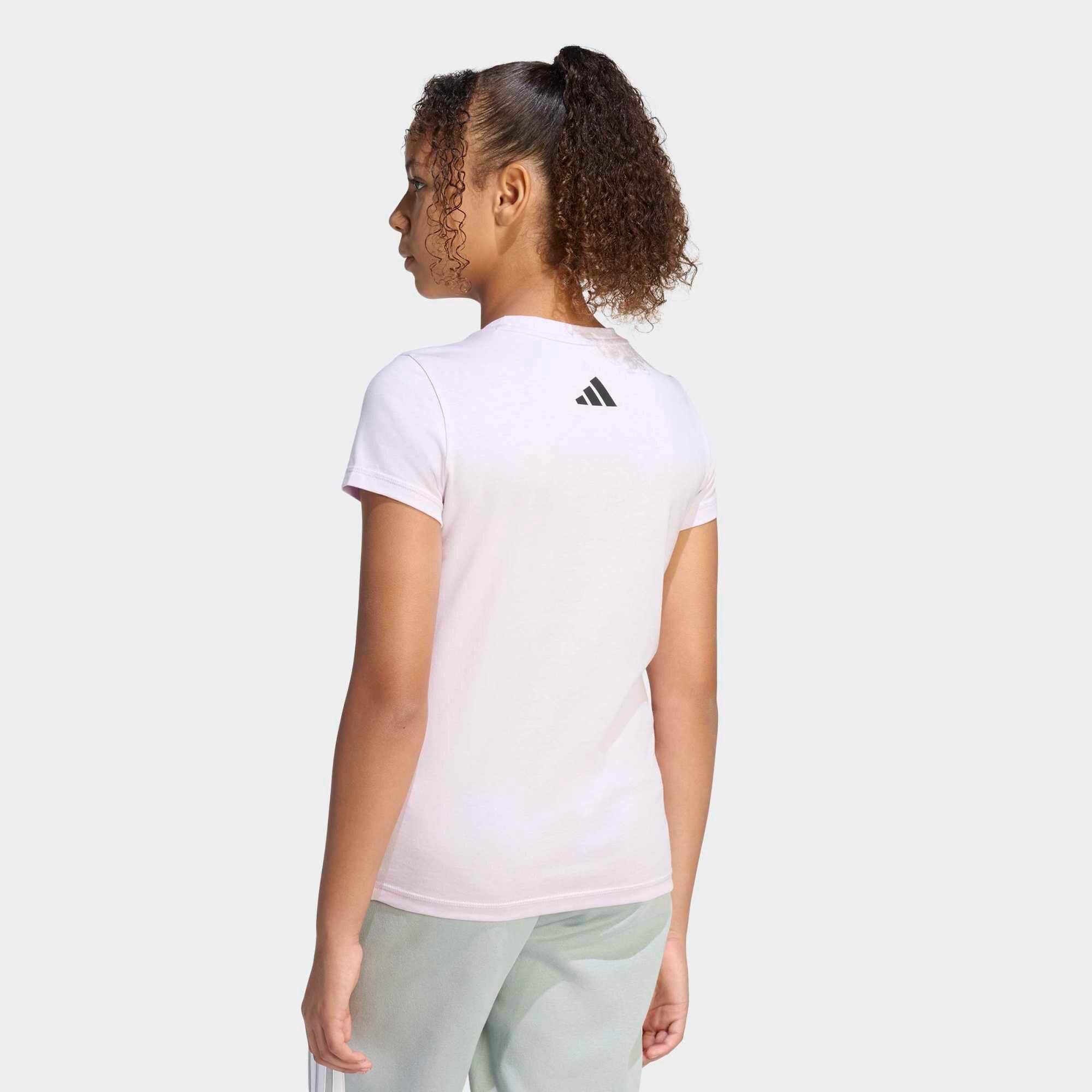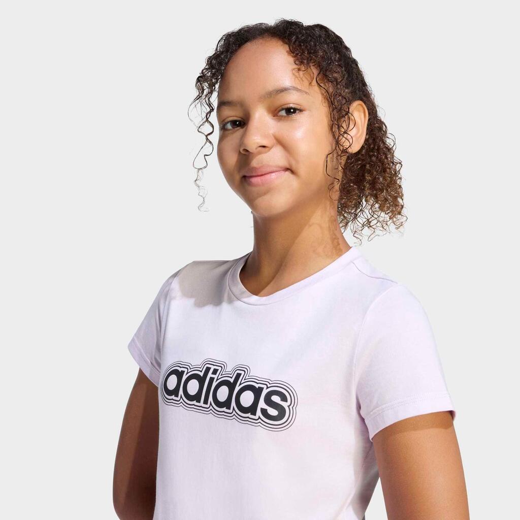 Άνετο και διαπνέον αθλητικό T-shirt για κορίτσια με το λογότυπο της Adidas. Ένα βασικό κομμάτι σε ροζ και λευκό χρώμα, τέλειο για νεαρές αθλήτριες.