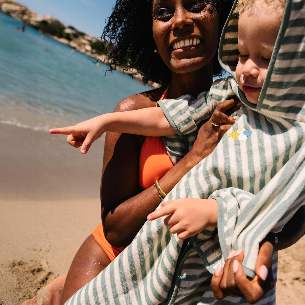 Πετσέτα-πόντσο σχεδιασμένη για μωρά ηλικίας από 6 μηνών έως 5 ετών που θέλουν να ζεσταθούν γρήγορα όταν βγαίνουν από το μπάνιο ή την πισίνα.