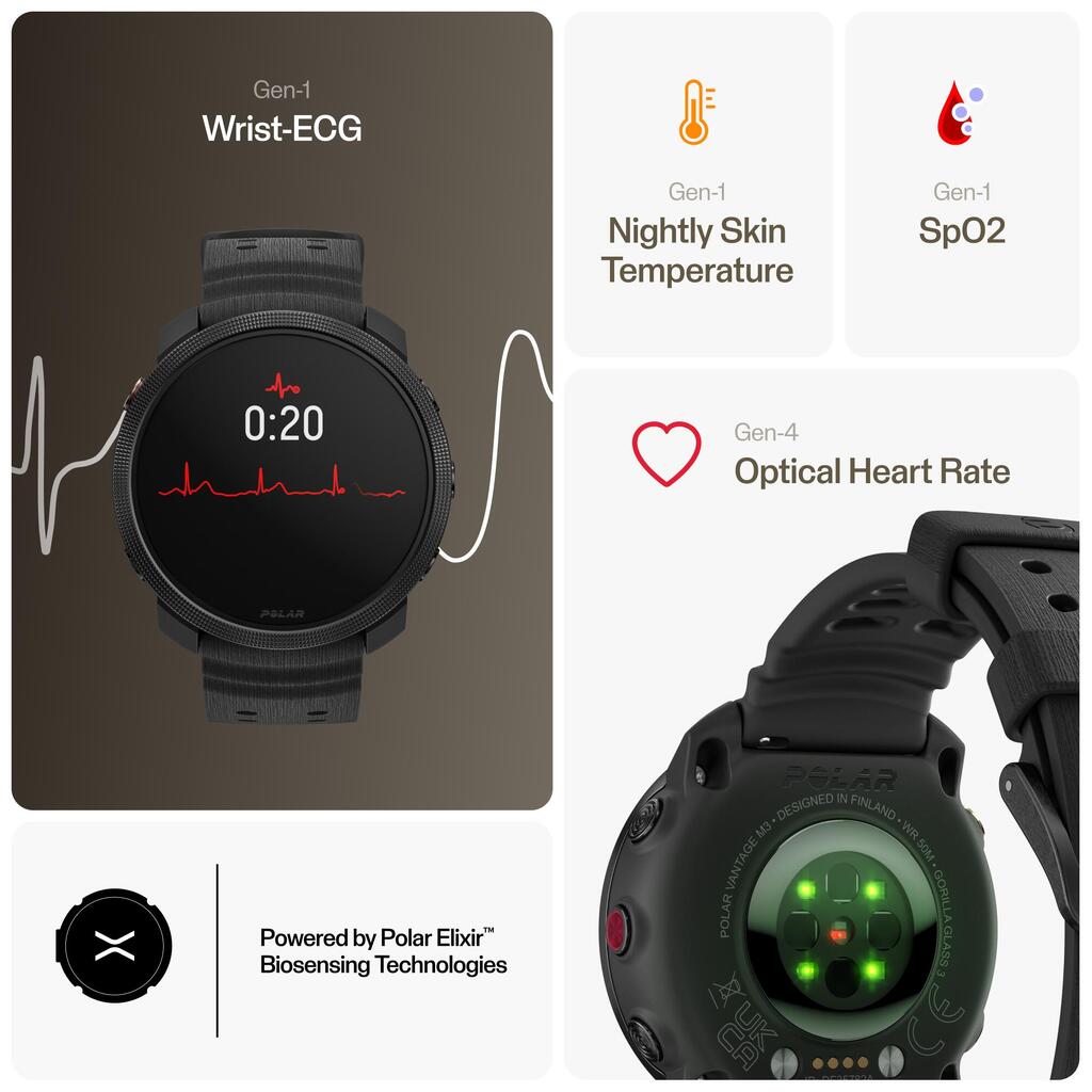Συνδεδεμένο Αθλητικό Ρολόι με GPS και Οθόνη AMOLED, Vantage M3 - Μαύρο