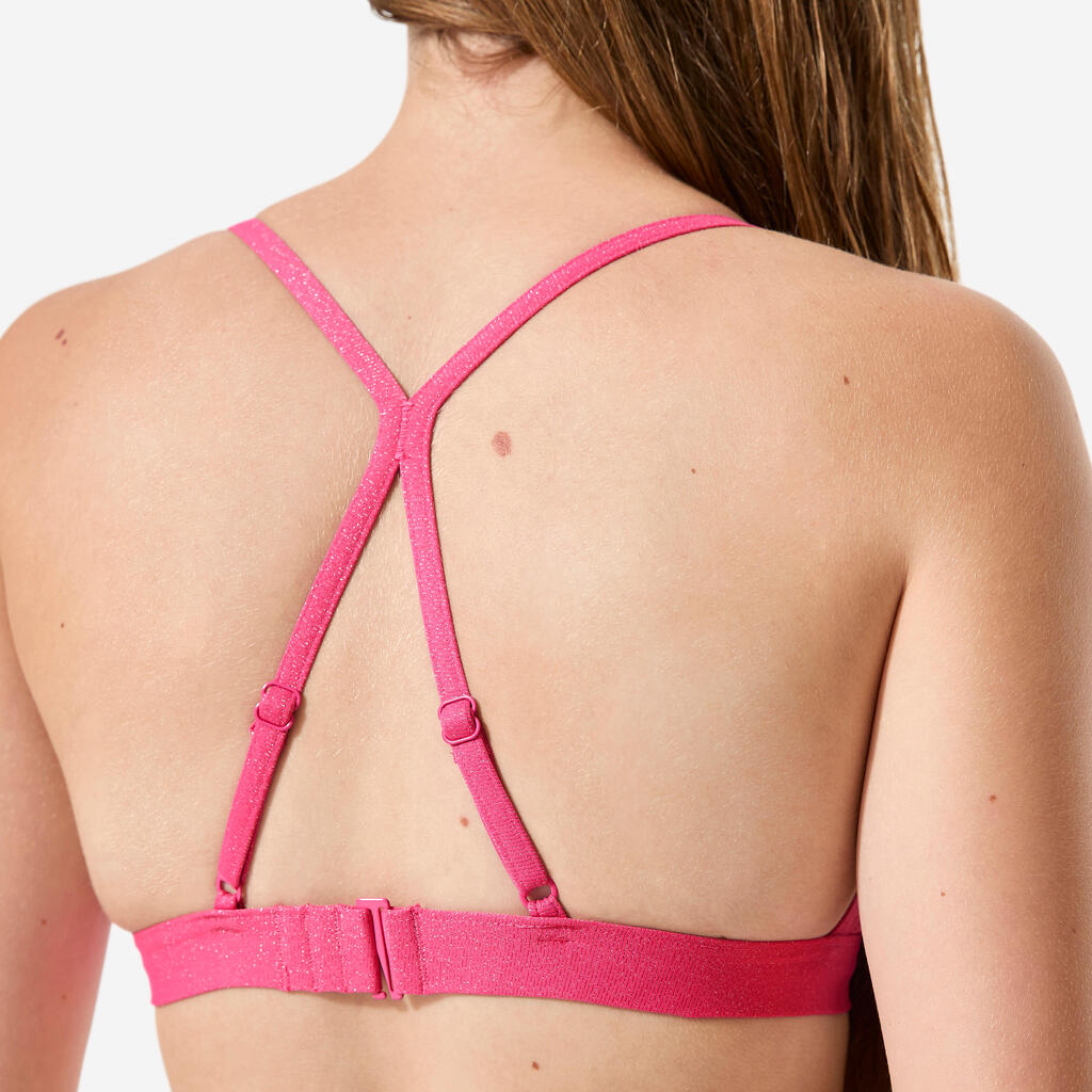 Ρυθμιζόμενο σουτιέν μαγιό surf για κορίτσια με χιαστί τιράντες Lizy - Ροζ