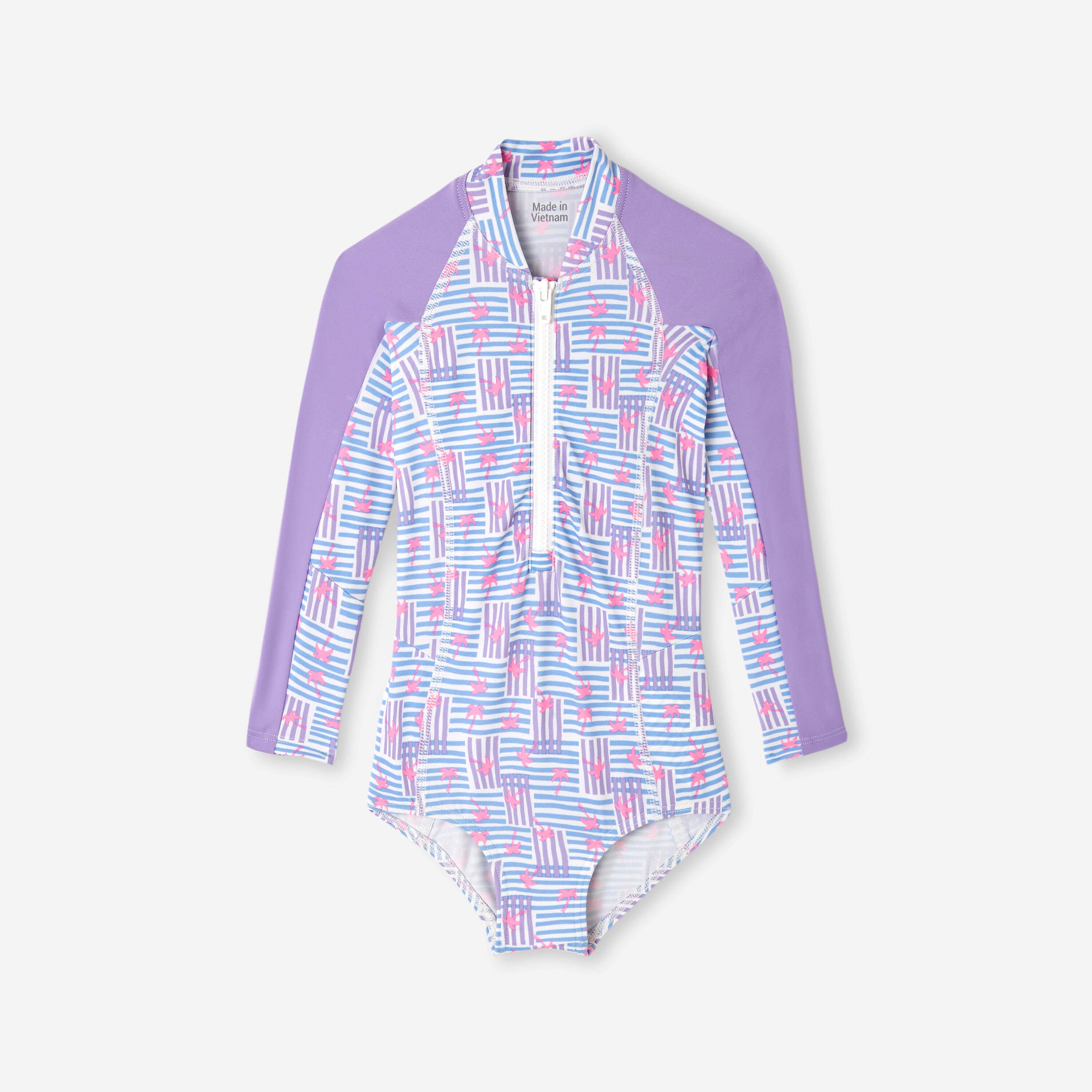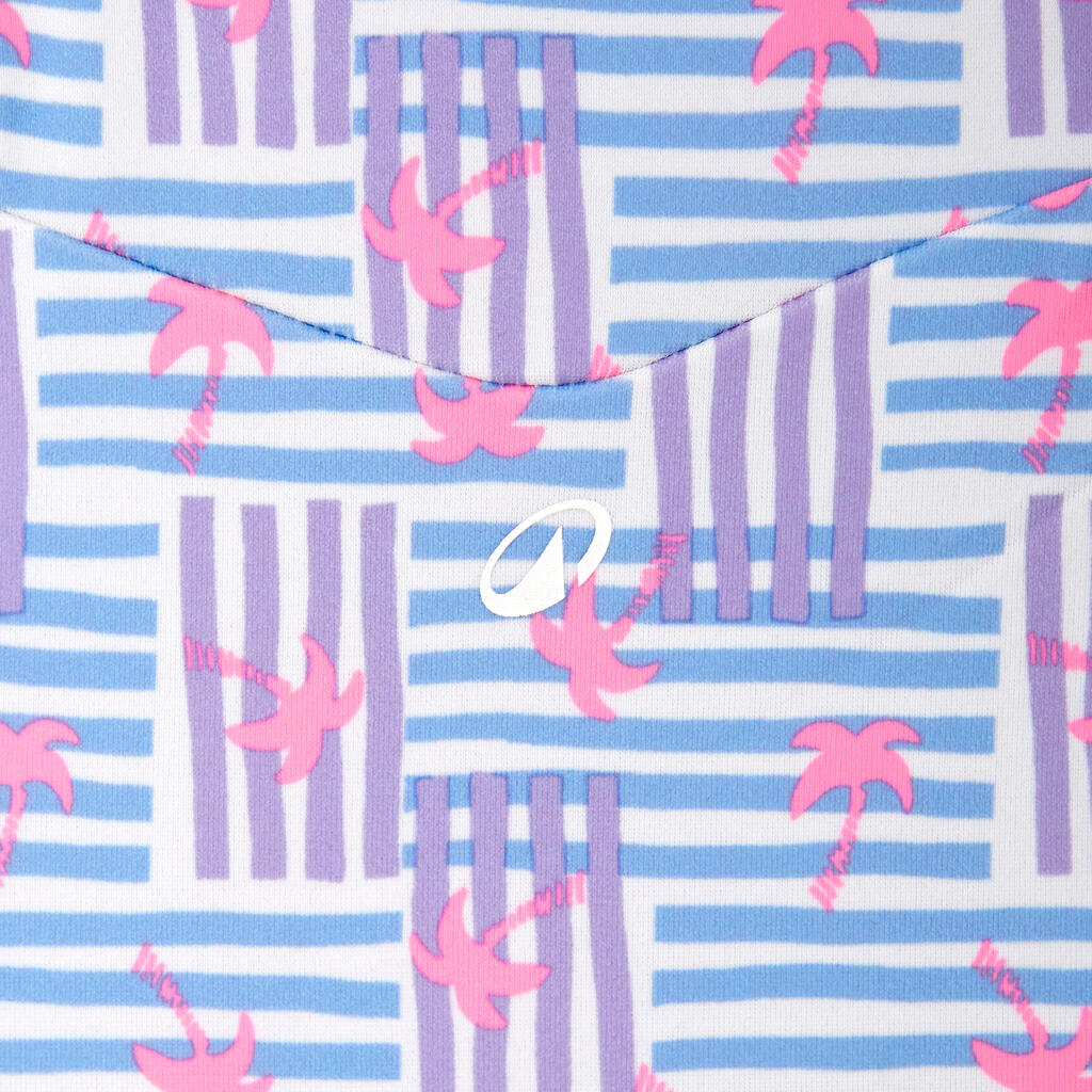 Αυτό το ολόσωμο μακρυμάνικο μαγιό με UV προστασία UPF 50+ προστατεύει τις νεαρές σέρφερ από τον ήλιο κατά τη διάρκεια των δραστηριοτήτων τους στο νερό.