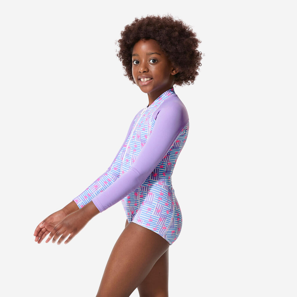 Ολόσωμο μακρυμάνικο μαγιό surf για κορίτσια με προστασία UV Loulou - Μωβ