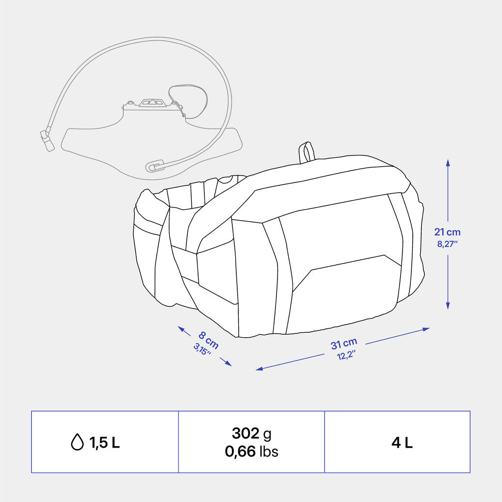 Αυτή η ζώνη ενυδάτωσης MTB , με όγκο αποθήκευσης 4 L, σχεδιάστηκε για να μεταφέρει τα απαραίτητα στις βόλτες σας, χωρίς να πιέζει τη μέση σας.