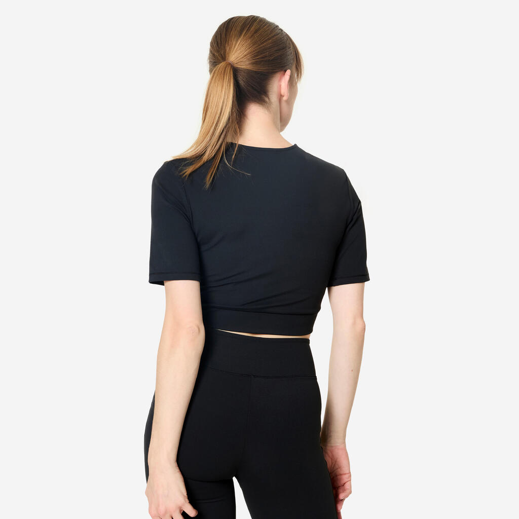 Γυναικείο crop μπλουζάκι γυμναστικής με σταυρωτό σχέδιο