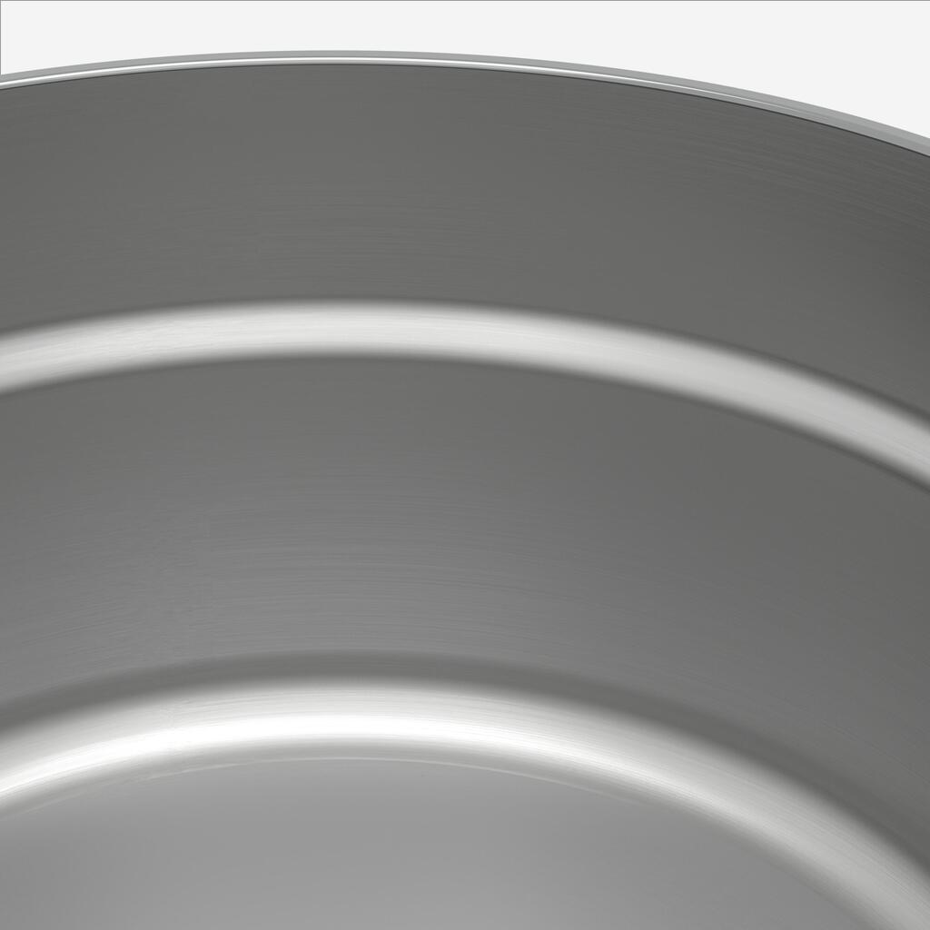 Επιλέξαμε ανοξείδωτο χάλυβα 18/8 (304) επειδή συνδυάζει ασφάλεια τροφίμων και μακροχρόνια αντοχή. Δεν οξειδώνεται και αποτρέπει τη διάβρωση. Είναι πολύ ανθεκτικός και μπορεί να χρησιμοποιηθεί με όλους τους τύπους σκευών (συμπεριλαμβανομένου μετάλλου). Και επειδή ότι ο ανοξείδωτος χάλυβας είναι λιγότερο αγώγιμος από το αλουμίνιο, προσθέσαμε διπλό πάτο αλουμινίου σε αυτό το προϊόν. Αυτό βελτιώνει τη διάχυση της θερμότητας και αυξάνει την απόδοση θέρμανσης, ώστε να μειώνεται η κατανάλωση αερίου.