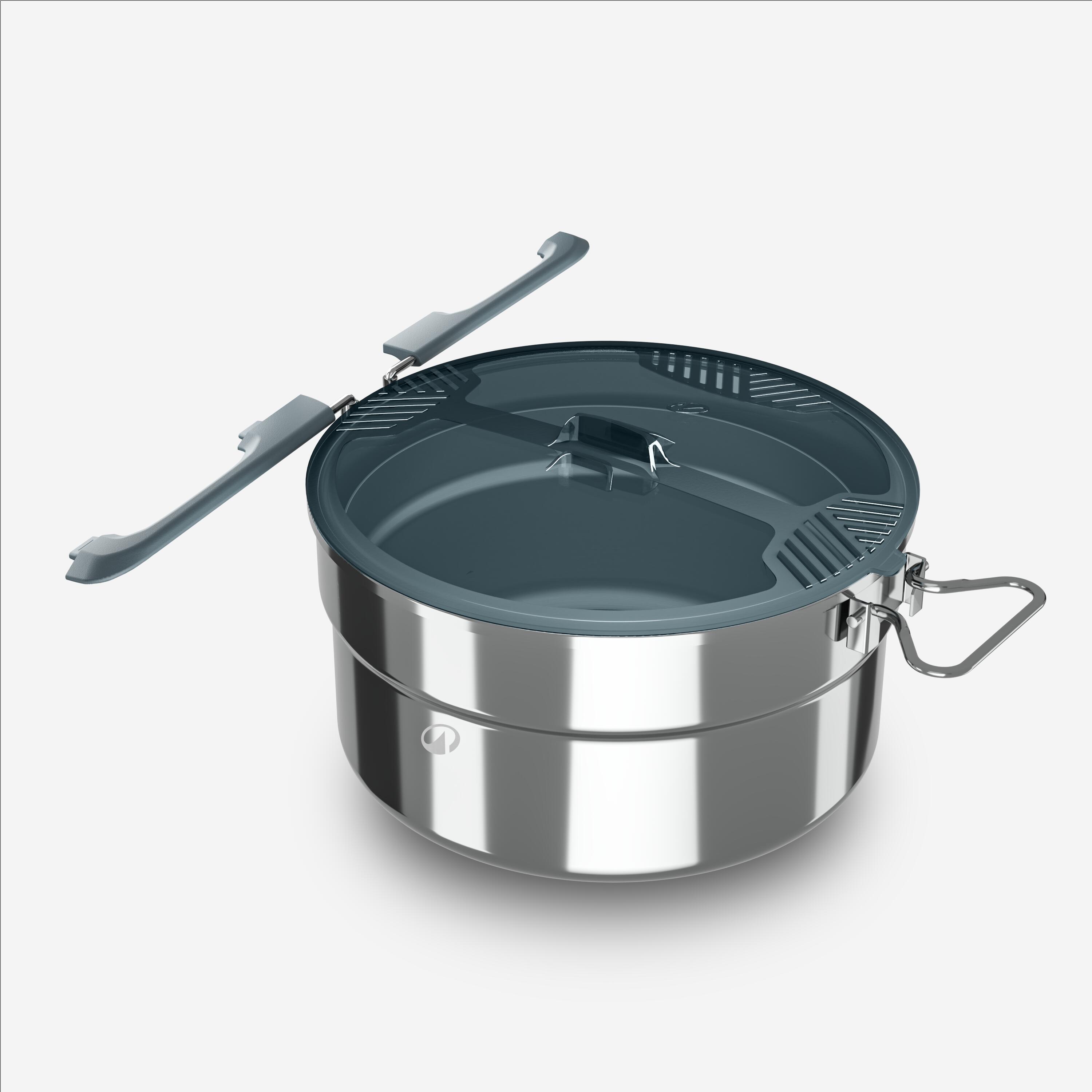 Το κατσαρολάκι διαθέτει μια αναδιπλούμενη λαβή που ασφαλίζει το καπάκι κατά τη μεταφορά και μια δεύτερη μικρότερη λαβή για να το μετακινείτε με τα δύο χέρια. Το καπάκι εφαρμόζει στην κατσαρόλα, ζεσταίνει πιο γρήγορα το φαγητό και επίσης χρησιμοποιείται ως σουρωτήρι.