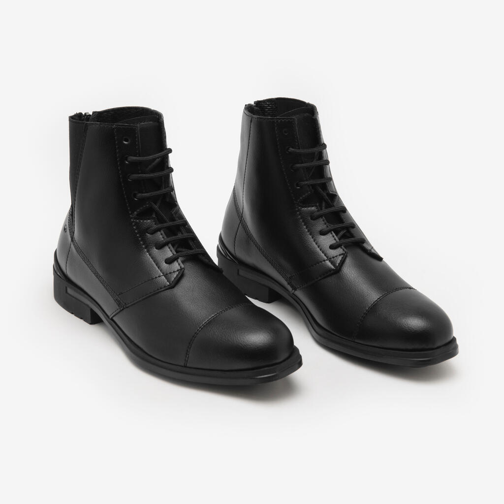 Αναζητάτε μπότες jodhpur που είναι ταυτόχρονα ανθεκτικές και εύκολες στη συντήρηση; Χάρη στο συνθετικό υλικό τους, οι μπότες Jodhpur 500 με κορδόνια συνδυάζουν τέλεια αυτά τα δύο σημαντικά κριτήρια.