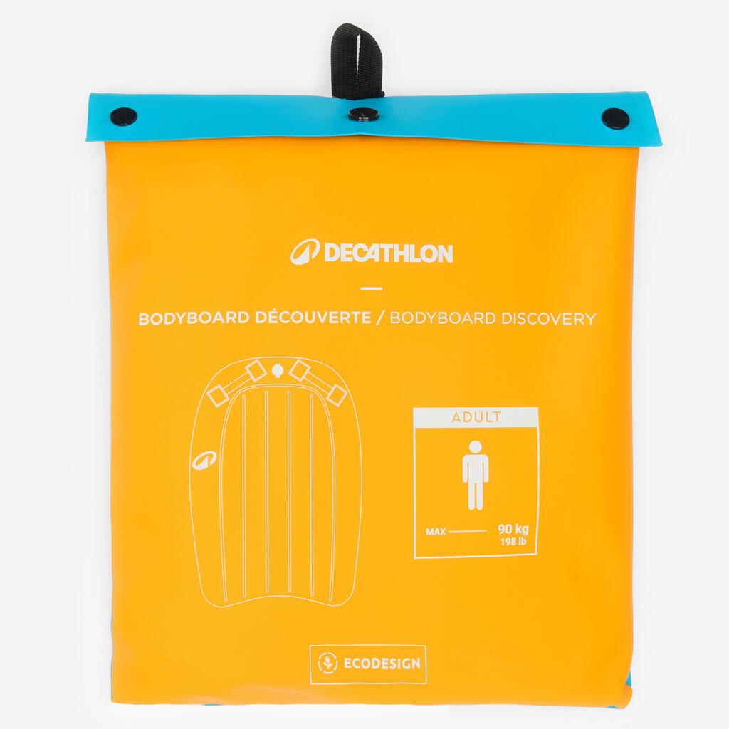 Αυτή η σανίδα bodyboard φουσκώνει με το στόμα. Μια πολύ φουσκωμένη σανίδα bodyboard δεν γλιστρά ομαλά και φθείρεται αν εκτεθεί σε έντονη ζέστη. Πρέπει να παραμένετε ξαπλωμένοι στη σανίδα bodyboard όταν πιάνετε κύματα. Φοράτε μακρυμάνικο μπλουζάκι με προστασία UV ή στολή κατάδυσης για να αποφύγετε τους ερεθισμούς στα χέρια και στον κορμό από την τριβή. Για επιπλέον άνεση, πιέστε τη βαλβίδα μέσα στη σανίδα bodyboard όταν τη φουσκώσετε.