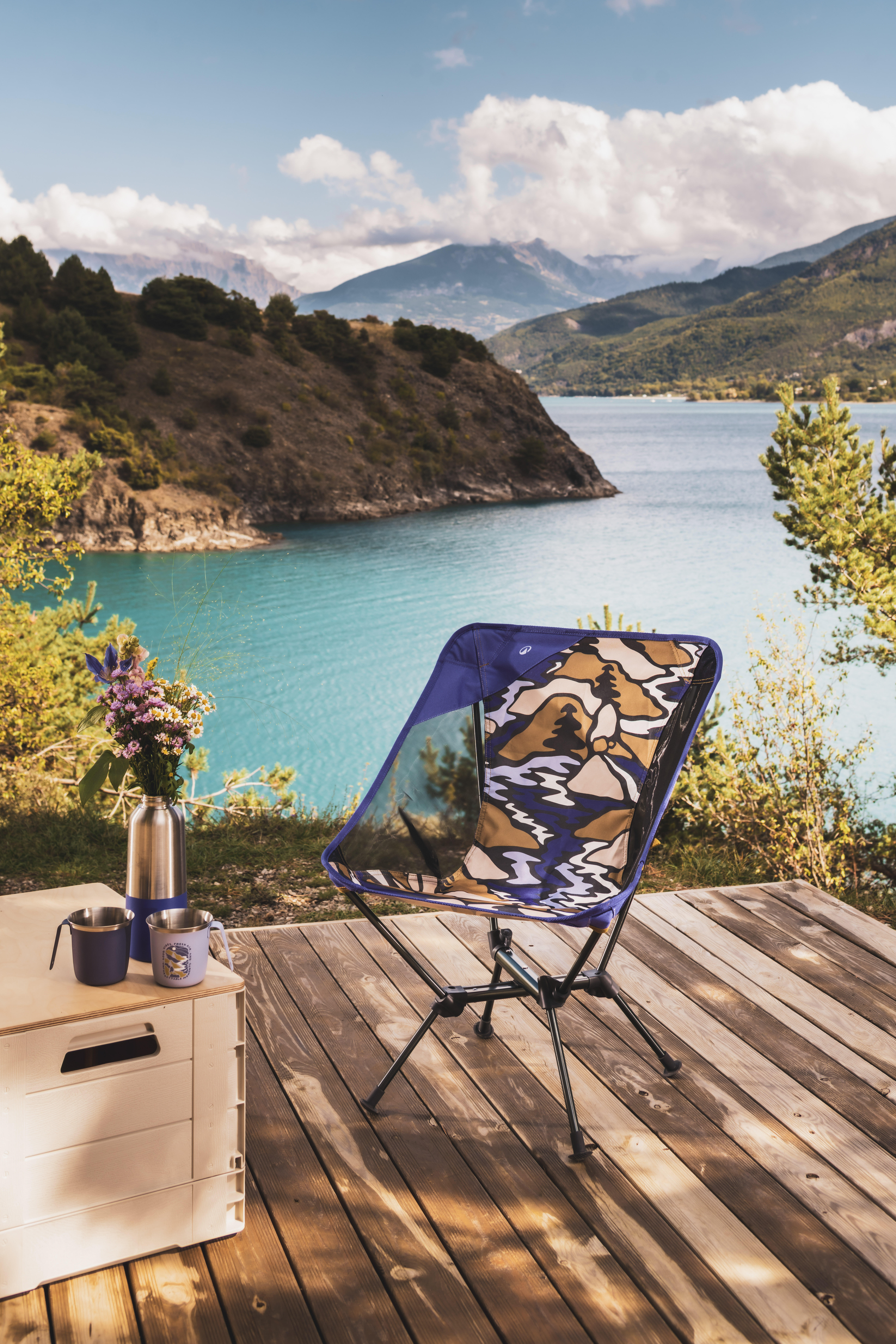 Με βάρος μόλις 1,1 kg, αυτό το χαμηλό κάθισμα μπορεί να χρησιμοποιηθεί παντού χάρη στο αποθηκευτικό του κάλυμμα. Στηρίζει έως 110 kg. Γρήγορο άνοιγμα χάρη στις ενσωματωμένες ελαστικές ταινίες.