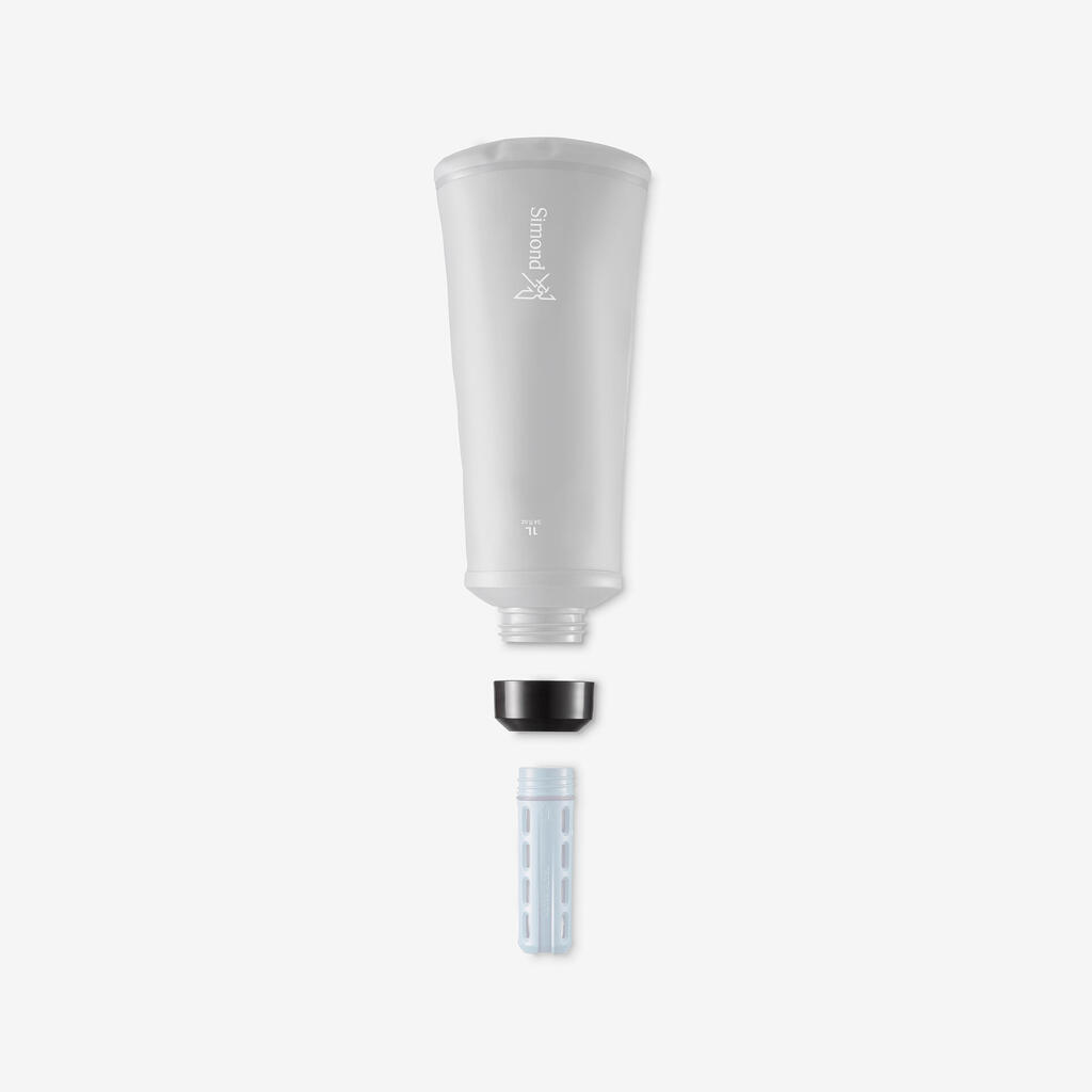 Με χωρητικότητα 1 L, γεμίζει γρήγορα χάρη στο μεγάλο του άνοιγμα. Είναι ελαφρύ, 115 g όταν είναι άδειο, και μικρού όγκου όταν είναι διπλωμένο. Ιδανικό για να πιάνει όσο το δυνατόν λιγότερο χώρο.