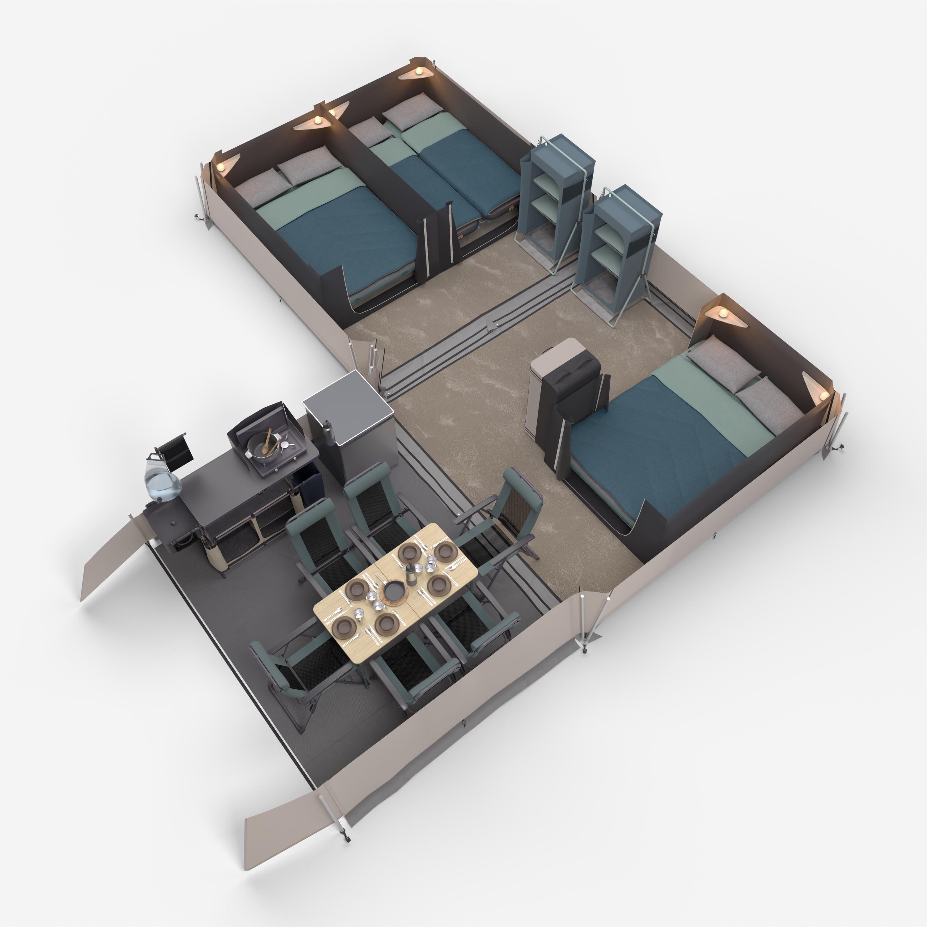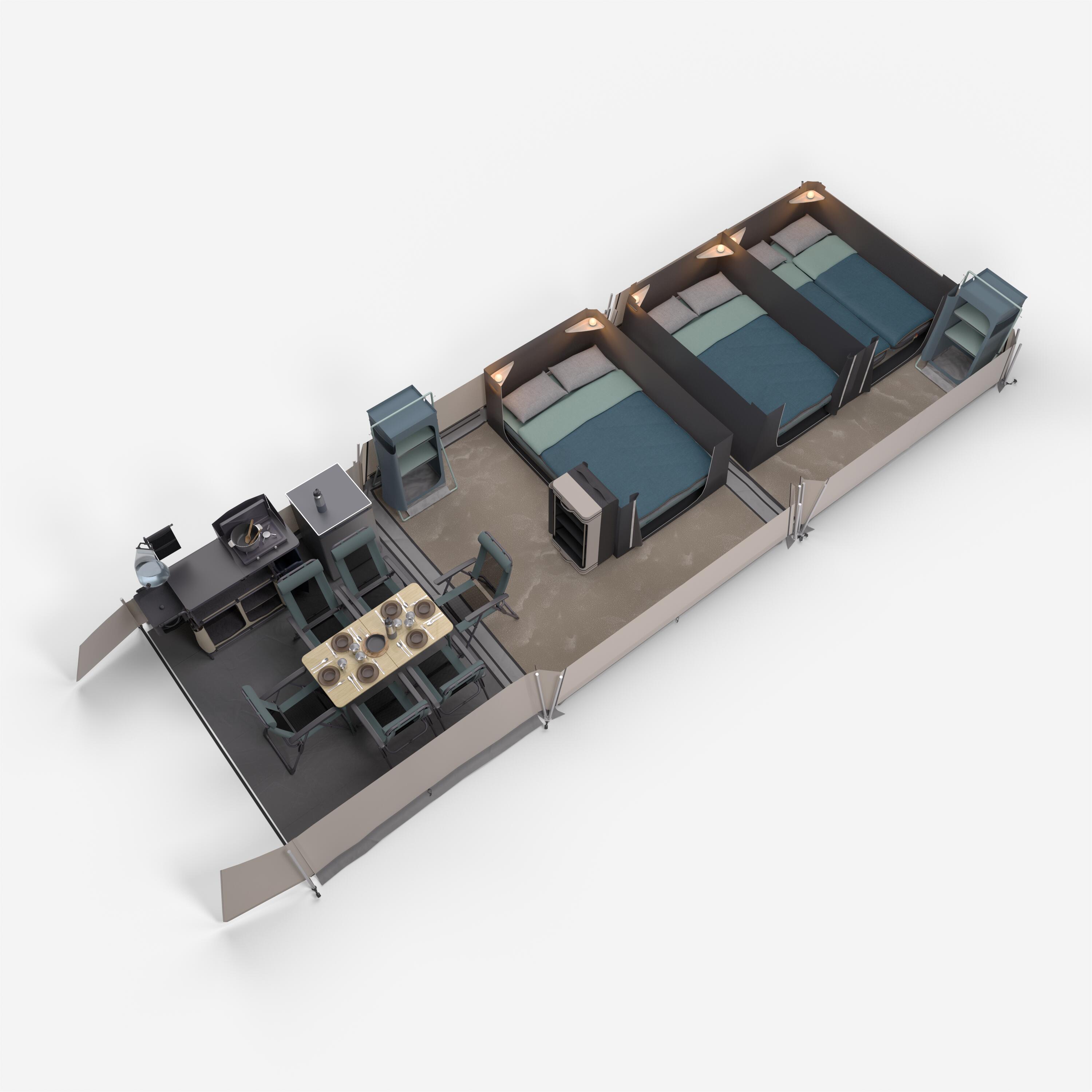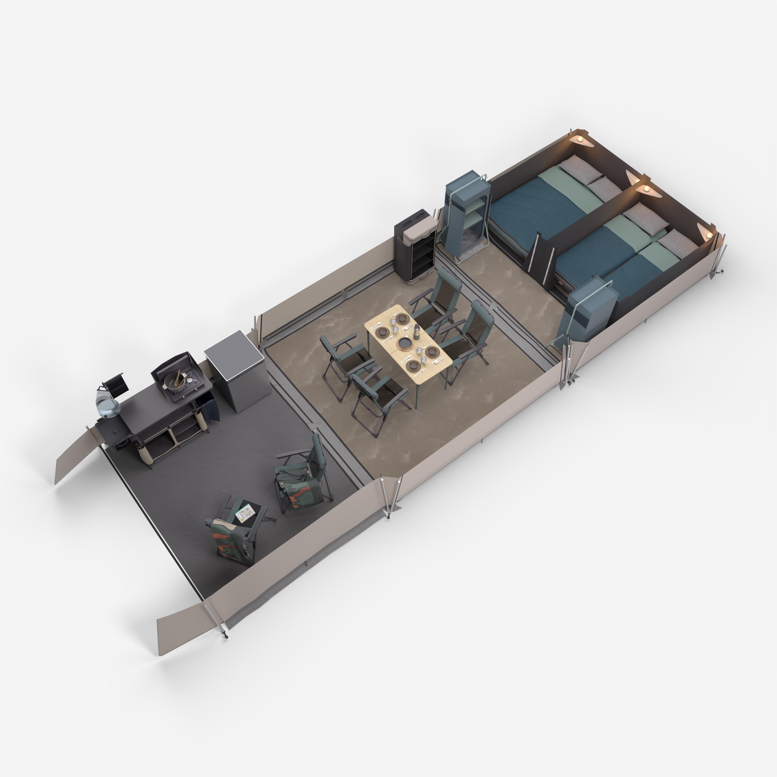 Αυτή η σκηνή έχει σχεδιαστεί για να αντέχει σε πολλές πλήρεις περιόδους camping. Μπορεί να παραμείνει εγκατεστημένο στον χώρο camping από την έναρξη έως το κλείσιμο της σεζόν, εκτός από τους χειμερινούς μήνες.